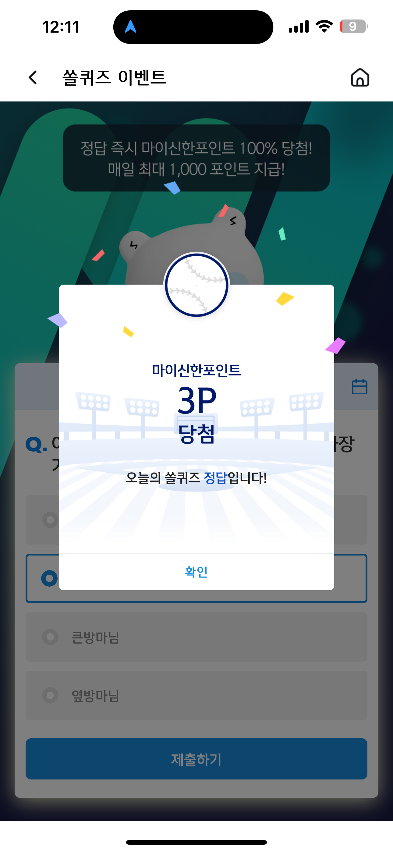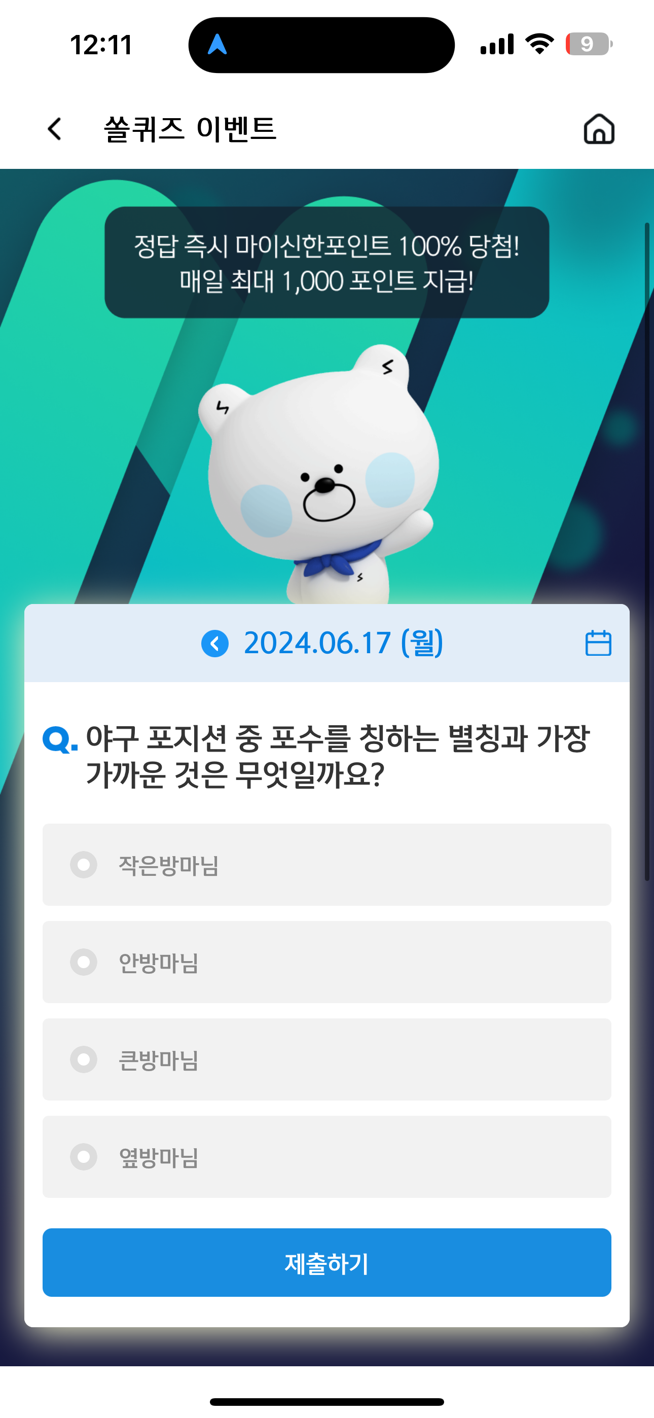 신한 슈퍼SOL 야구/상식 쏠퀴즈 6월 17일 문제입니다