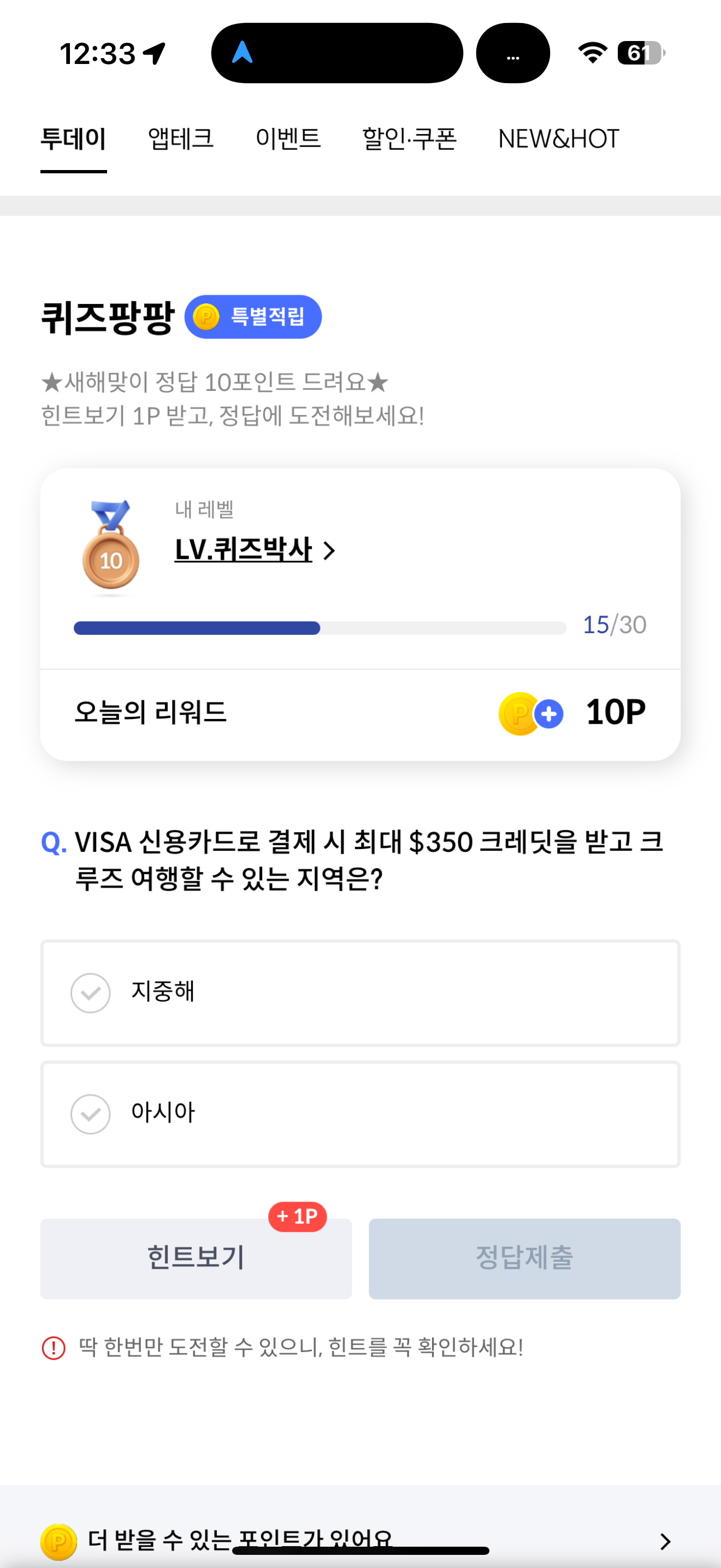 신한카드 퀴즈팡팡 1월 16일 정답(VISA 신용카드로 결제 시 최대 $350 크레딧을 받고 크루즈 여행할 수 있는 지역은?)