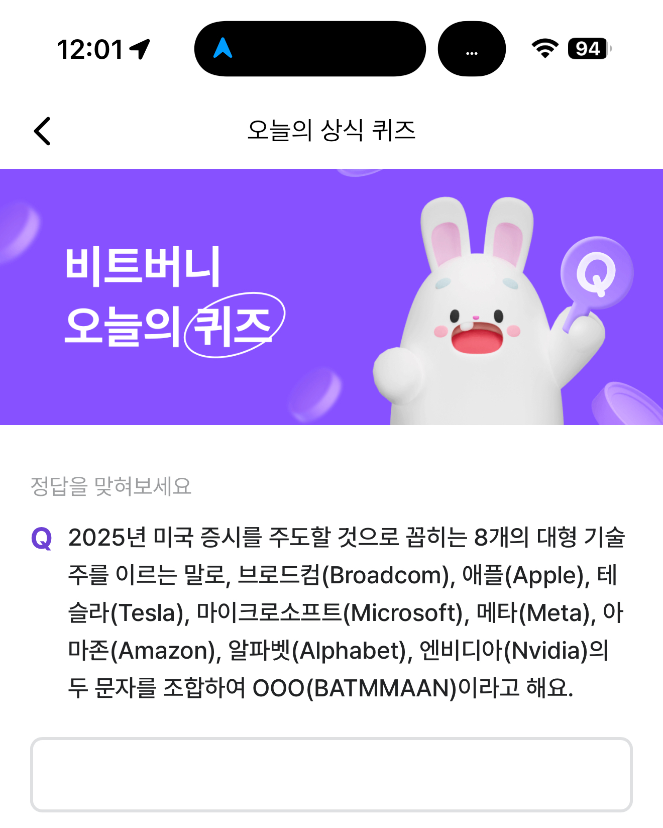 비트버니 오늘의 퀴즈 초성 힌트는 ㅂㅌㅁ 입니다