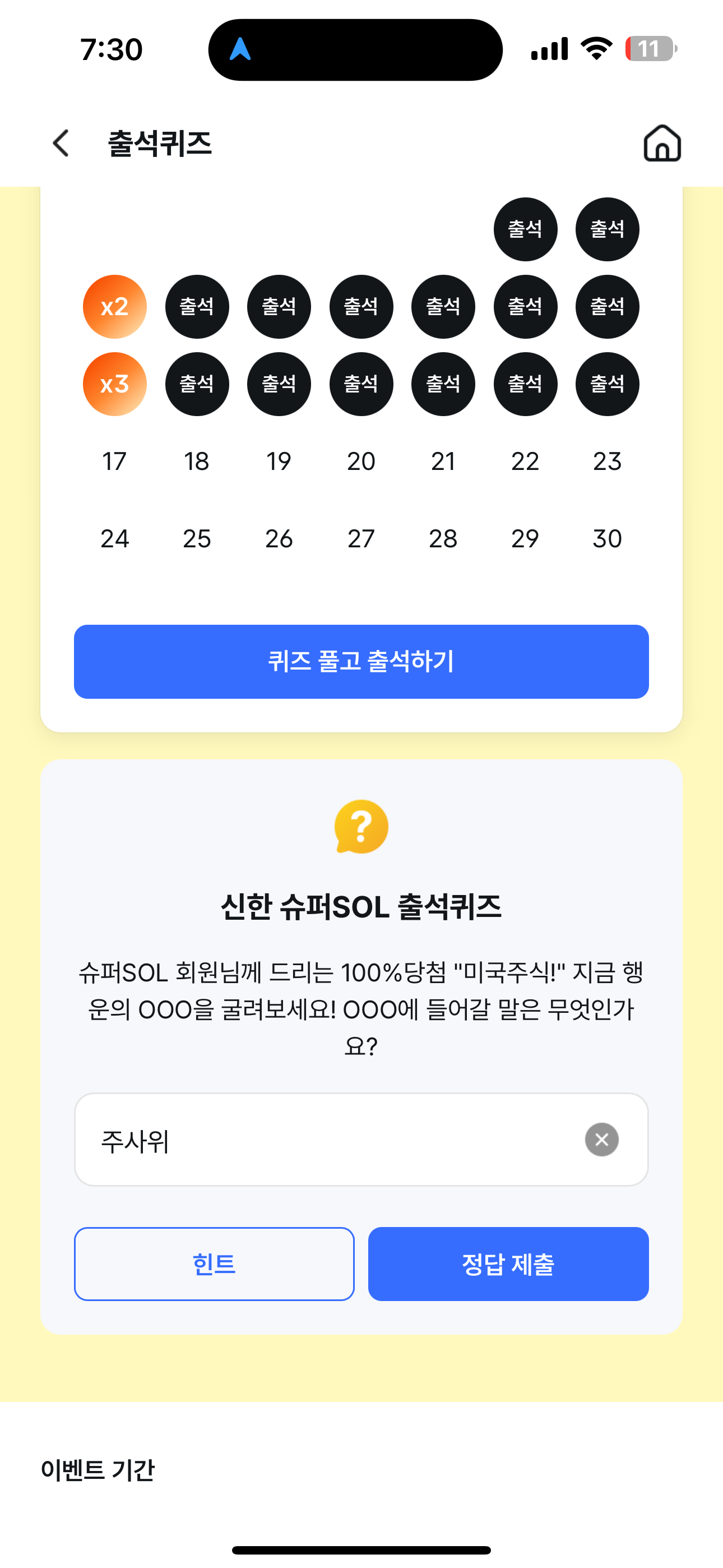 신한 슈퍼SOL 출석퀴즈 정답은 주사위 입니다