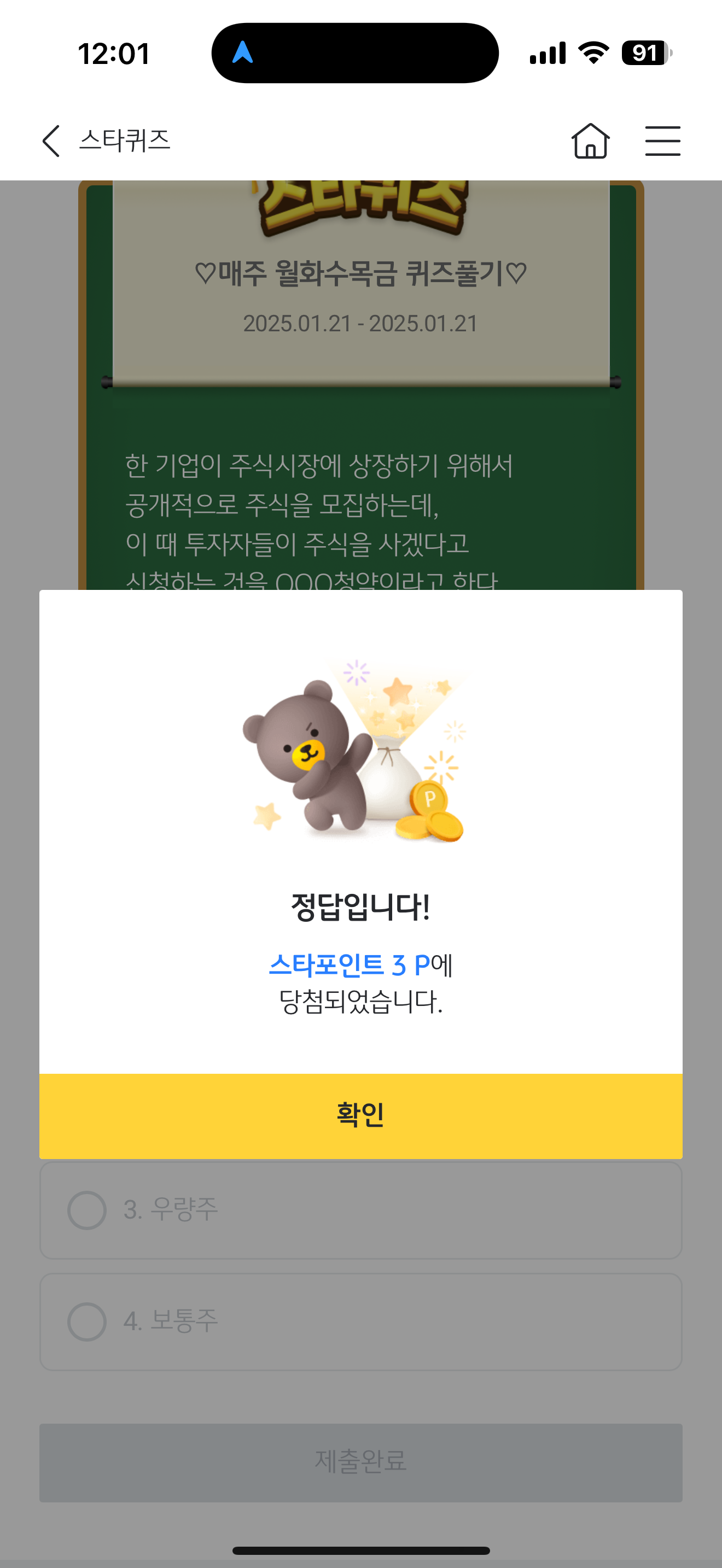 KB스타뱅킹 스타퀴즈 정답은 2. 공모주 입니다