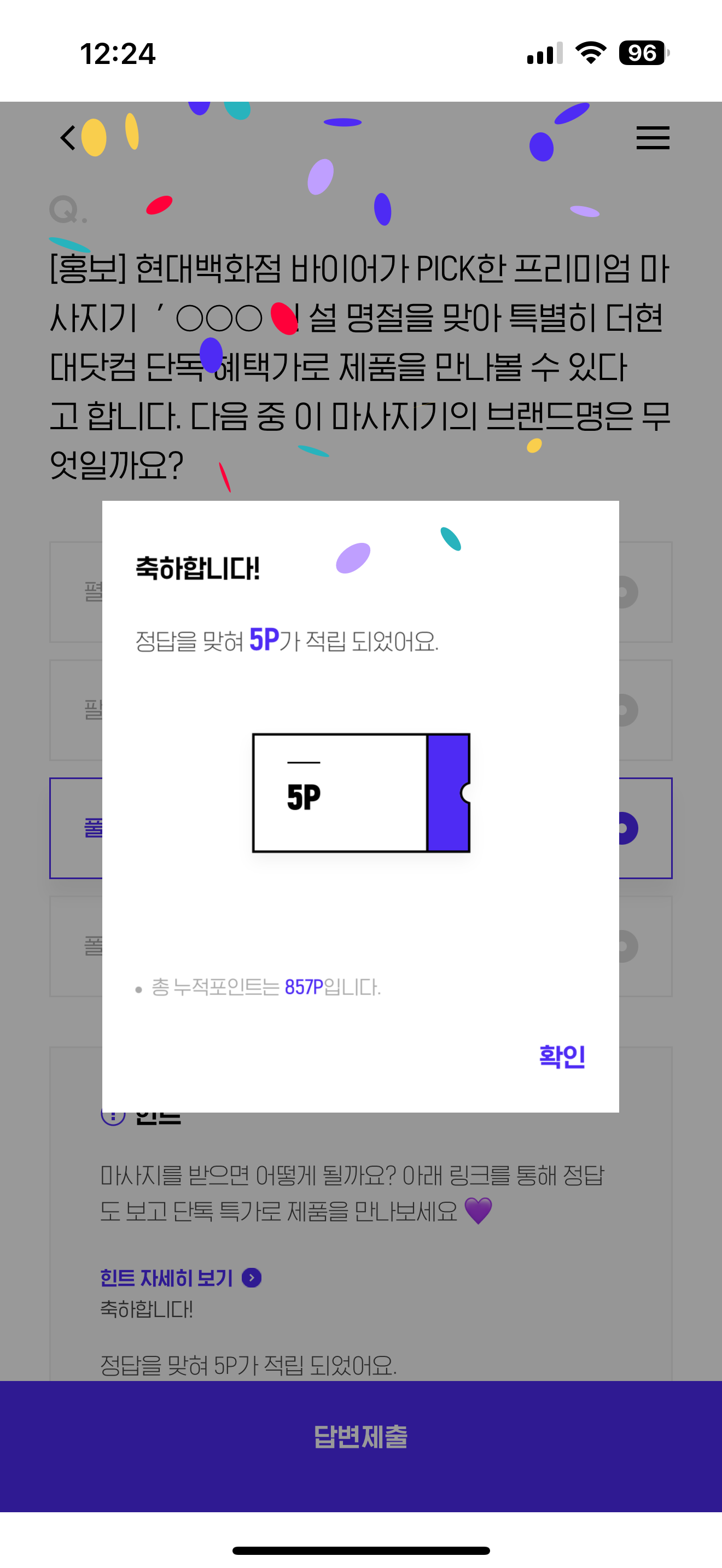 현대백화점 바이어가 PICK한 프리미엄 마사지기 ' OOO ' ! 설 명절을 맞아 특별히 더현대닷컴 단독 혜택가로 제품을 만나볼 수 있다고 합니다. 다음 중 이 마사지기의 브랜드명은 무엇일까요? 보기는 1. 펼리오 2. 팔리오 3. 풀리오 4. 폴리오 입니다. 마사지를 하면 풀린다는 의미를 담고 있습니다.