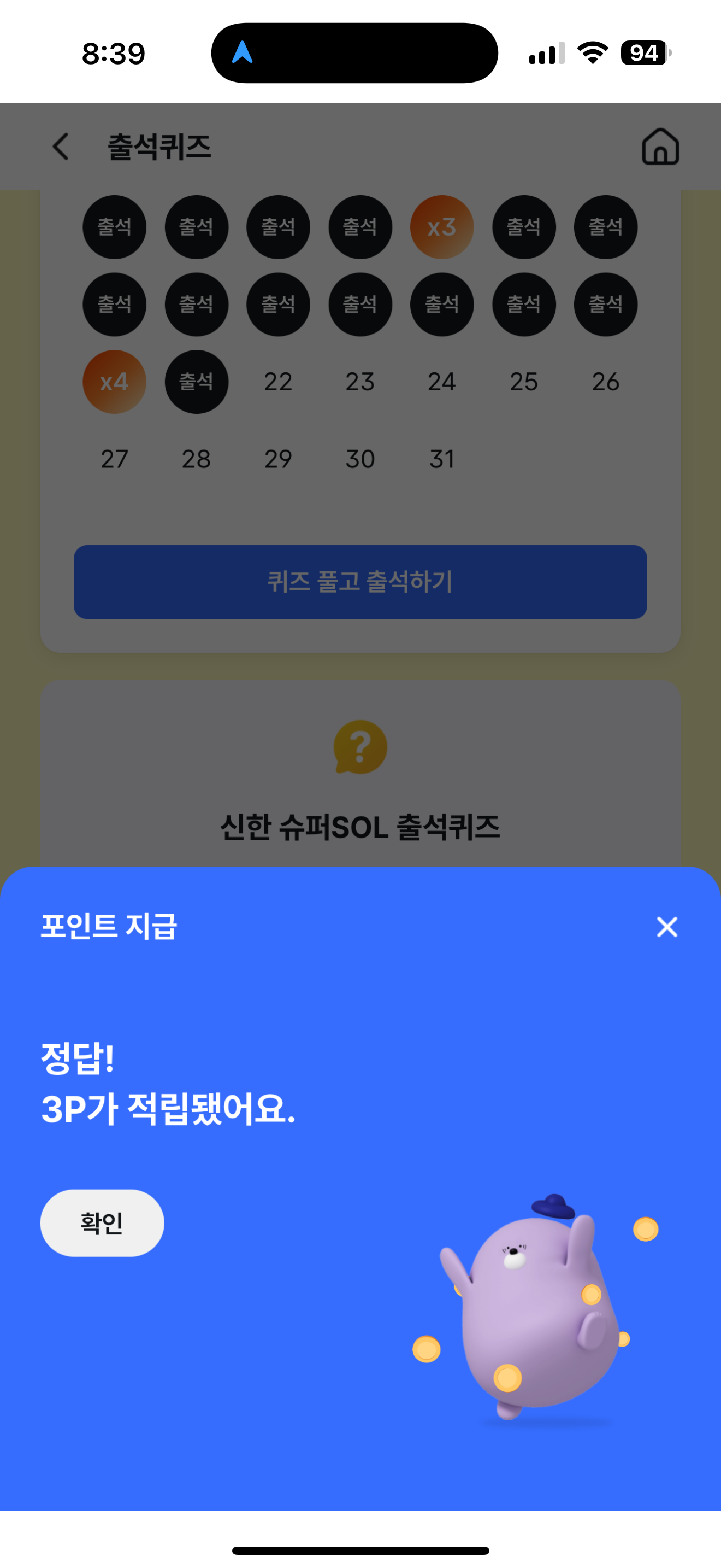 신한 슈퍼SOL 출석퀴즈 1월 22일 문제입니다