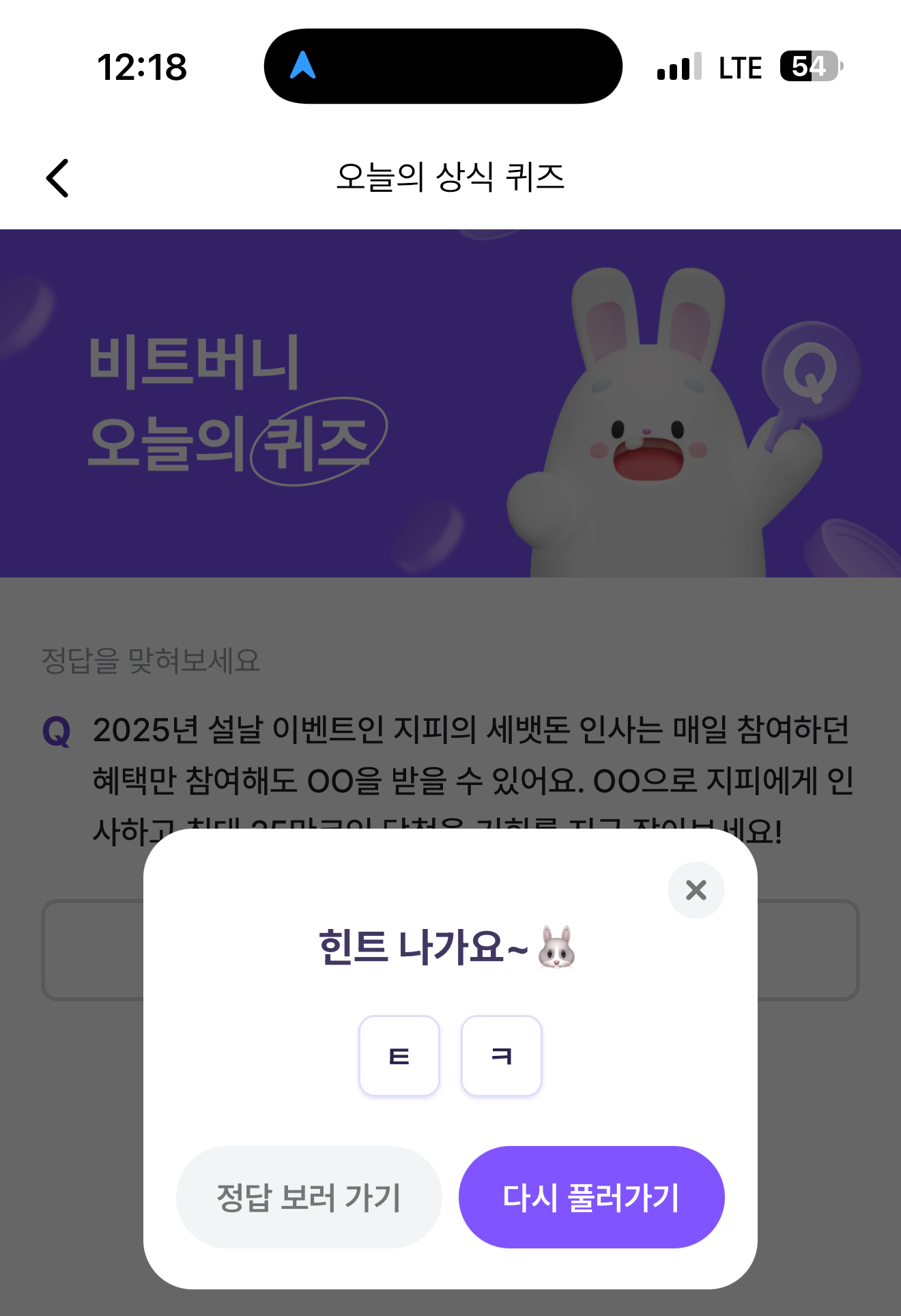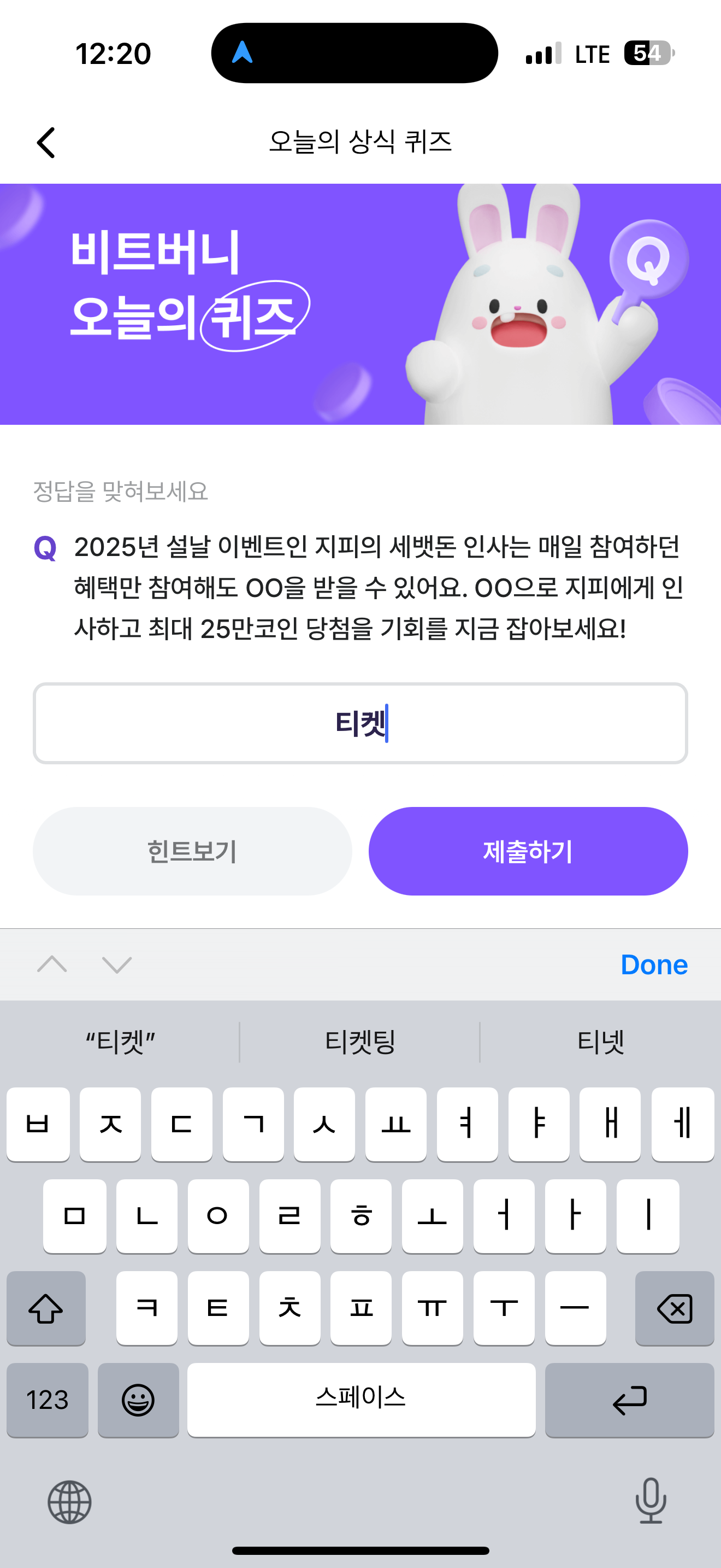비트버니 오늘의 퀴즈 초성 힌트는 ㅌㅋ 입니다