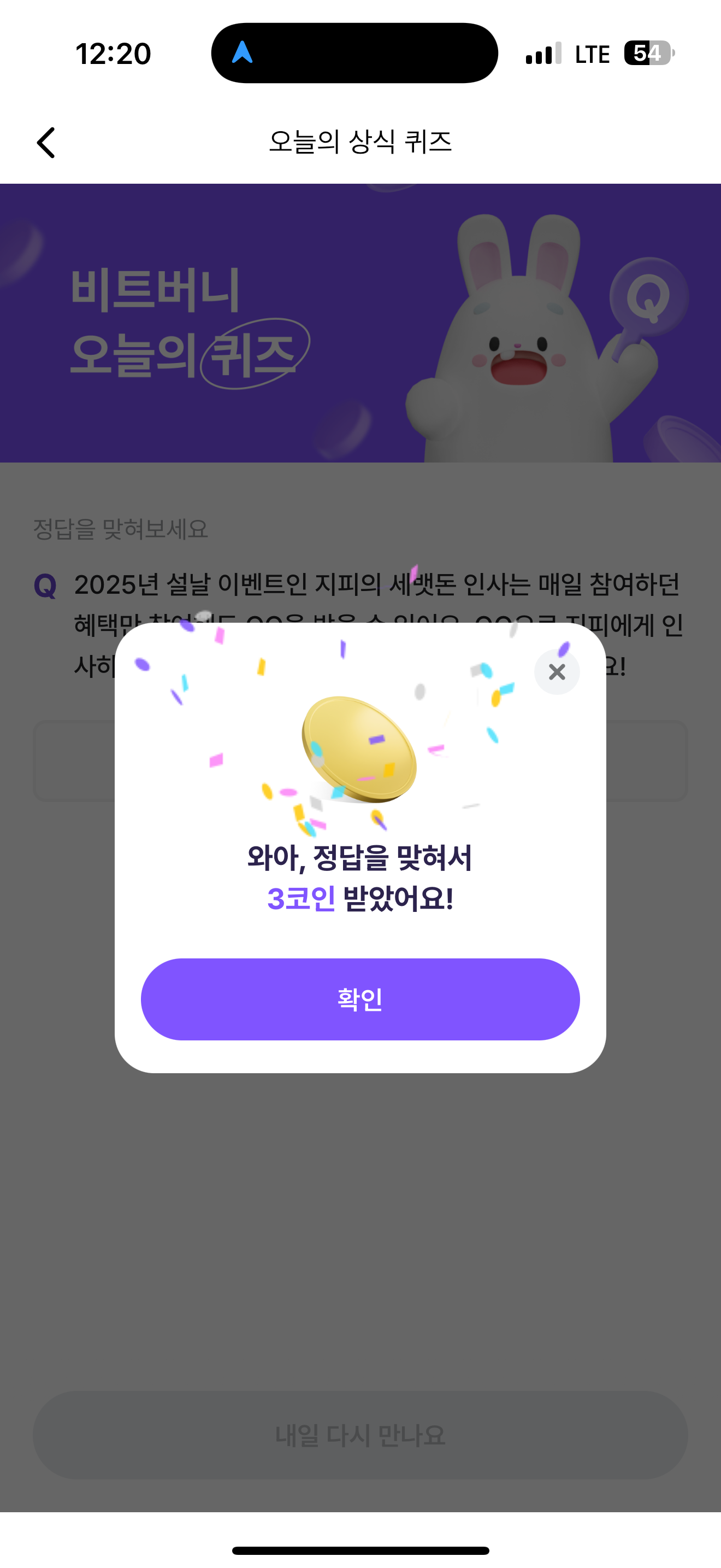 비트버니 오늘의 퀴즈 정답은 티켓 입니다