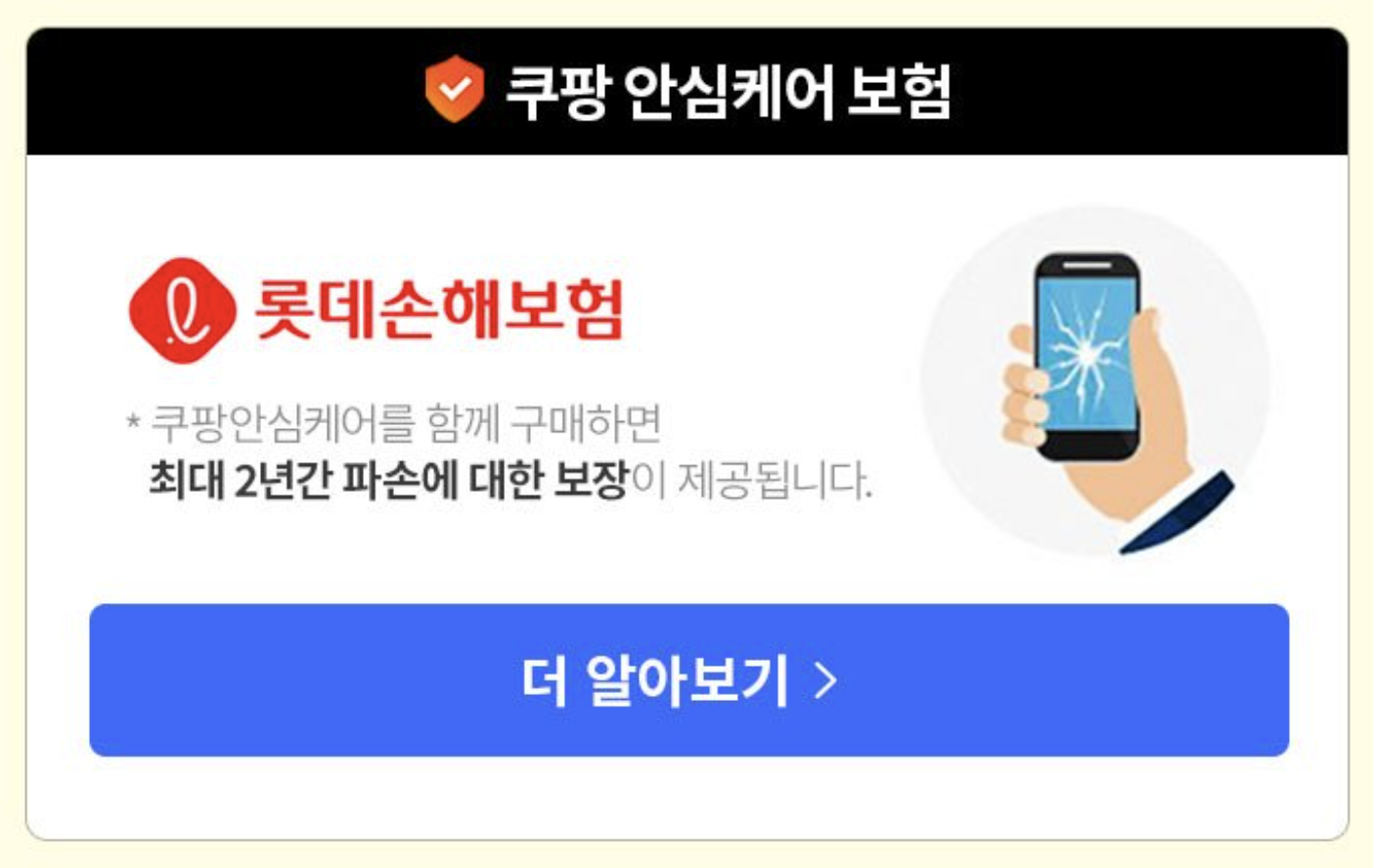 그리고 쿠팡 안심케어 보험도 들 수 있습니다. 요즘은 파손 보험이 필수가 되었죠. 혹시나 모를 파손에 대비한 서비스이니 이 부분도 잘 참고해서 활용해 보시기 바랍니다.
