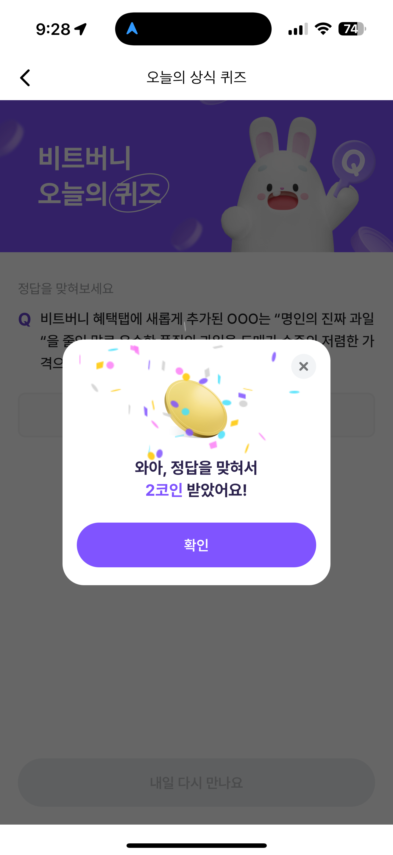비트버니 오늘의 퀴즈 초성 힌트는 ㅁㅈㄱ 입니다