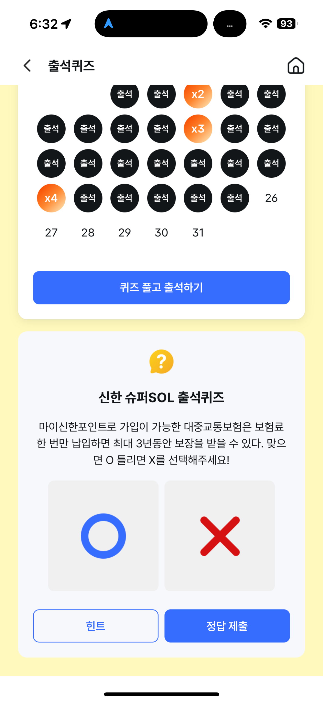 신한 슈퍼SOL 출석퀴즈 정답은 O 입니다