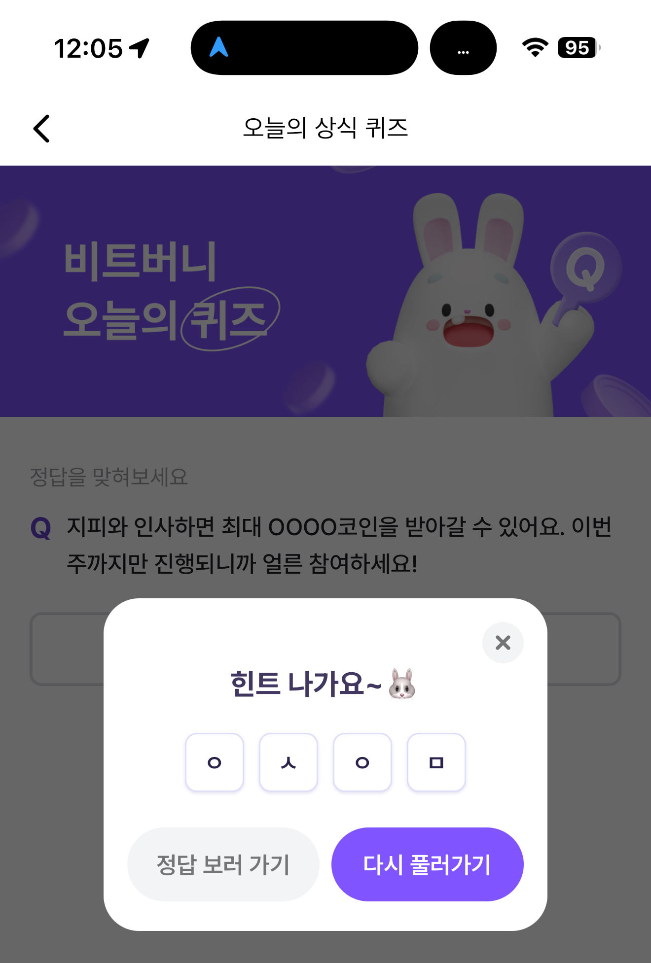 비트버니 오늘의 퀴즈 초성 힌트는 ㅇㅅㅇㅁ 입니다
