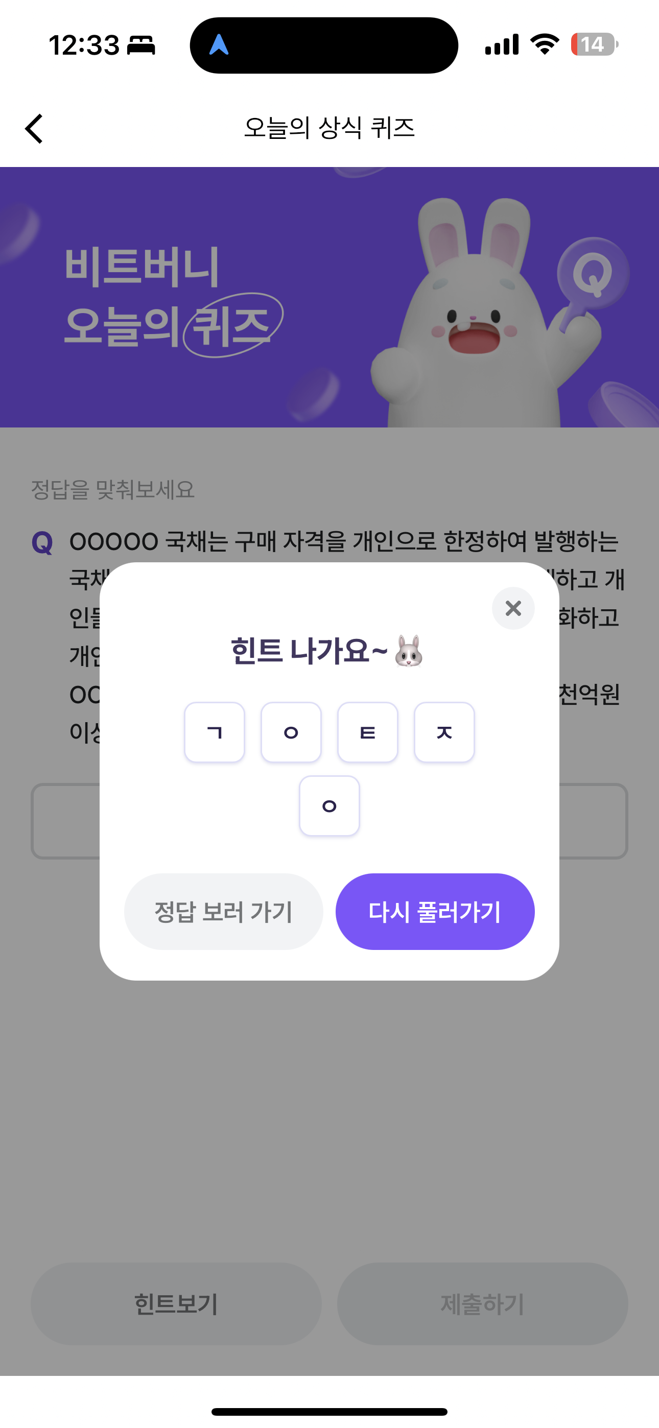 비트버니 오늘의 퀴즈 정답은 개인투자용 입니다
