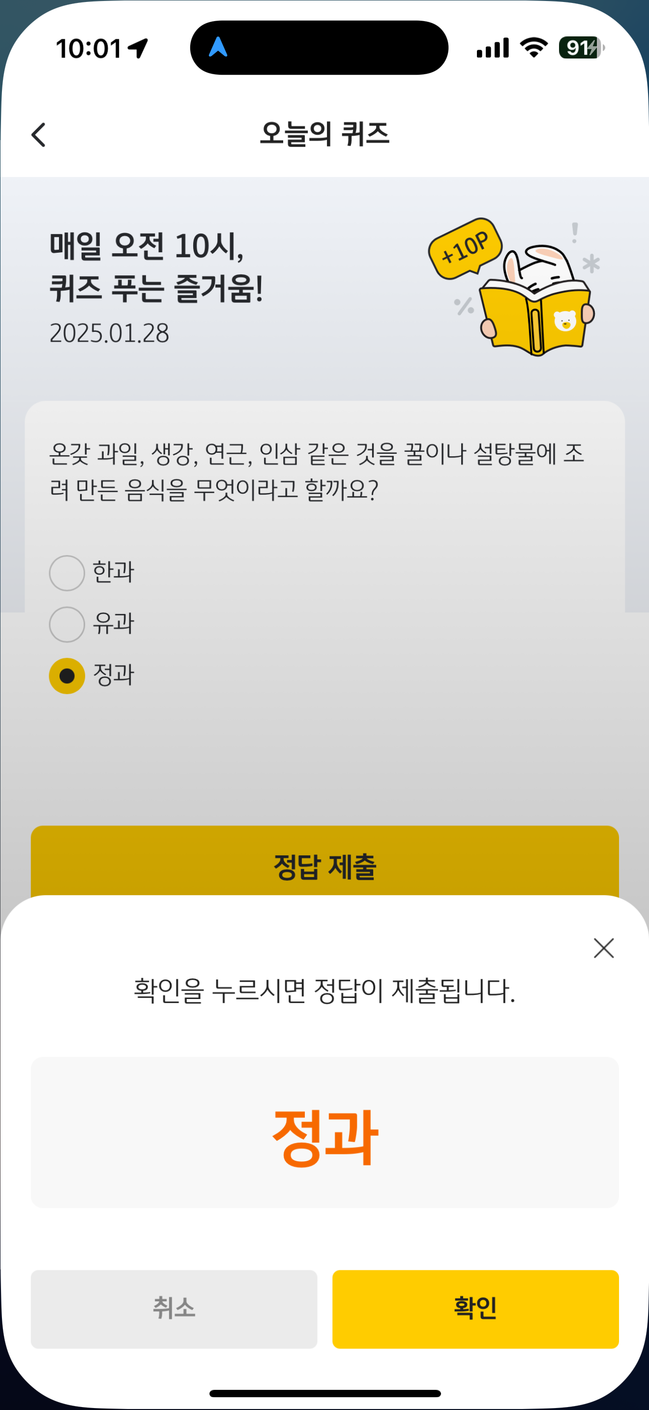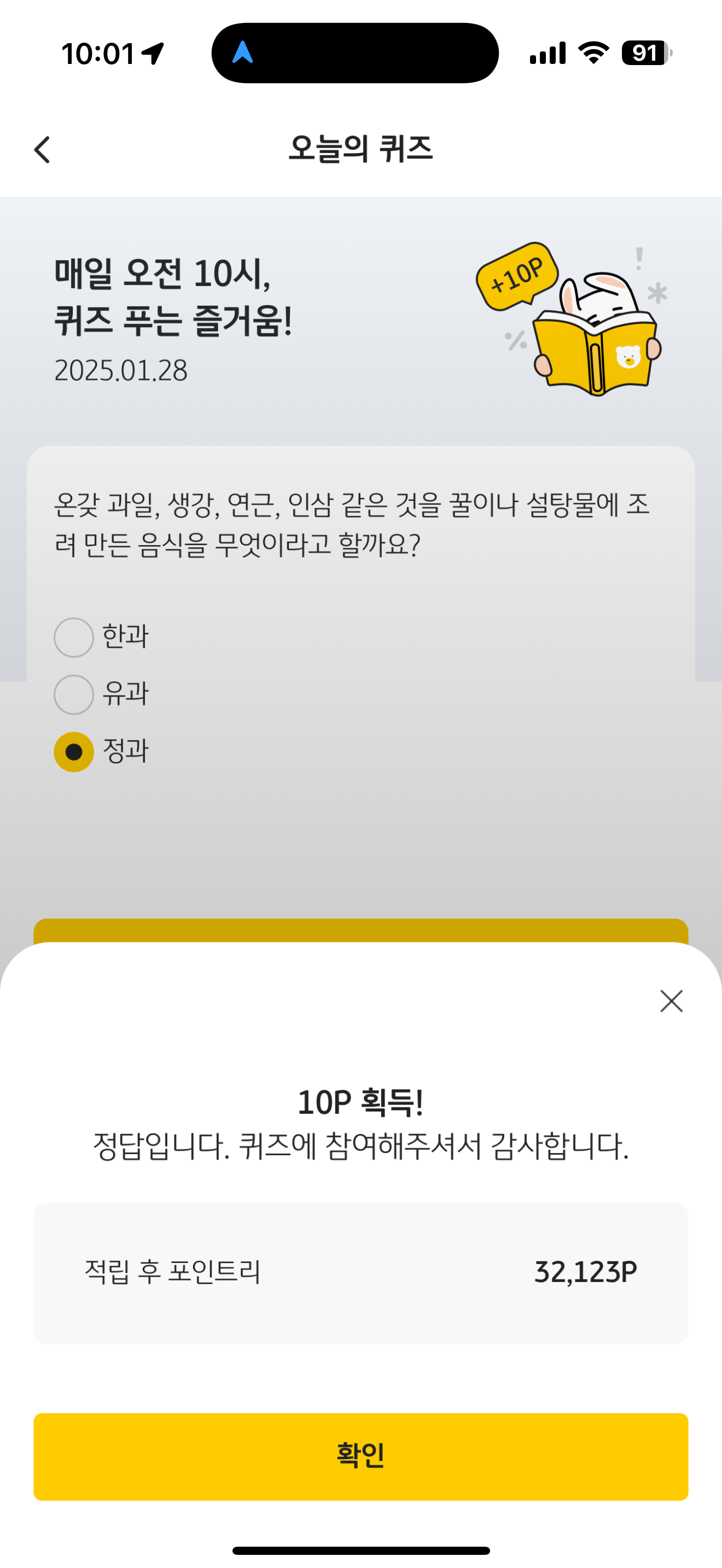 KB Pay 오늘의 퀴즈 정답은 정과 입니다