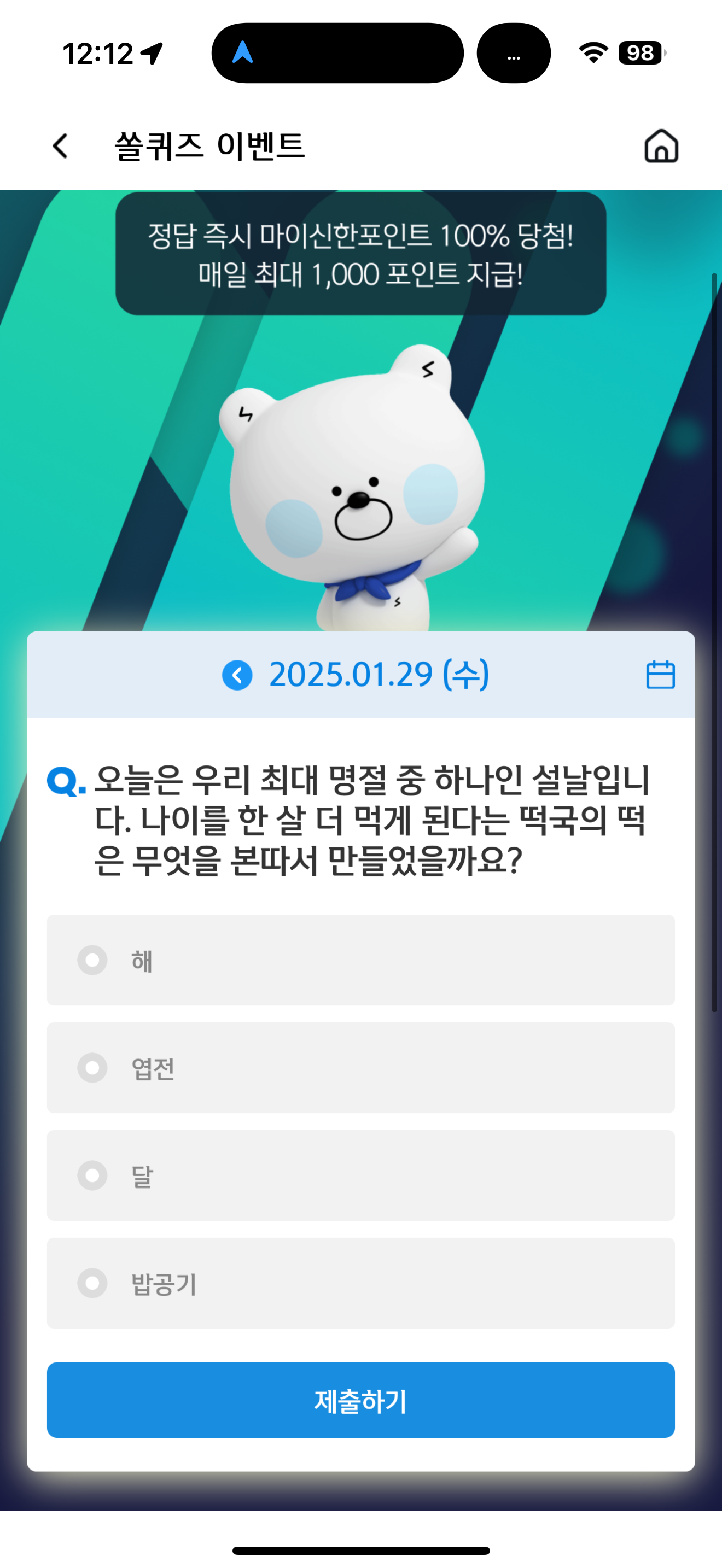 신한 슈퍼SOL 야구/상식 쏠퀴즈 1월 29일 문제입니다