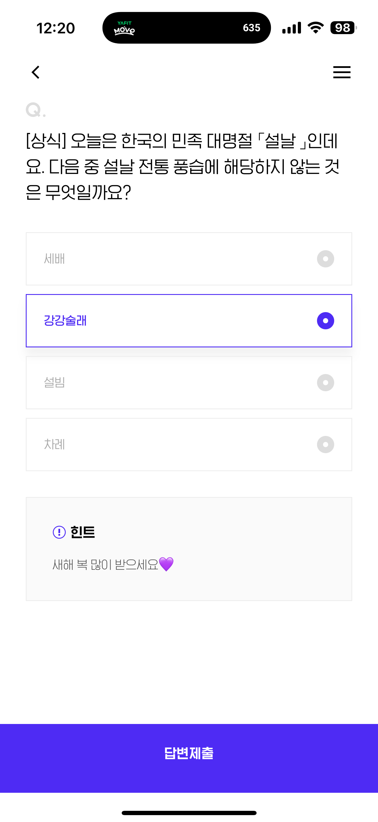 H포인트 퀴즈 정답은 강강술래 입니다