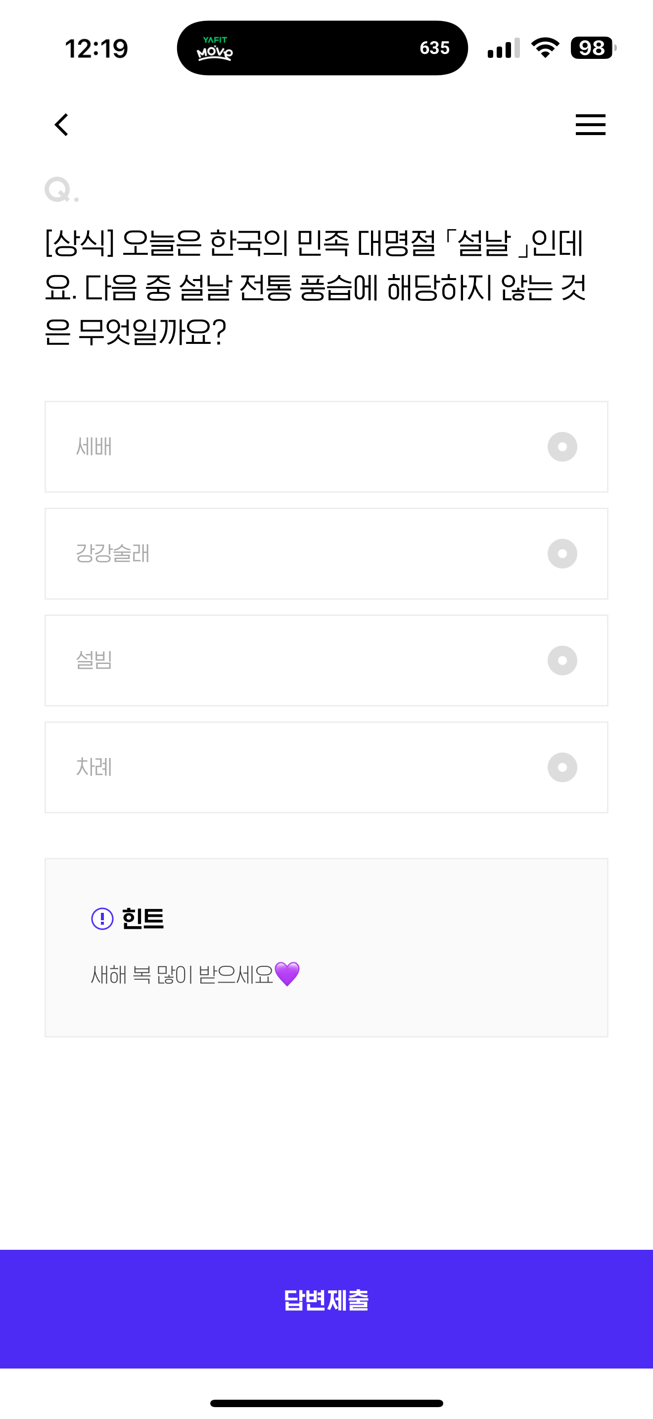 H포인트 퀴즈 1월 29일 정답(오늘은 한국의 민족 대명절 설날 인데요. 다음 중 설날 전통 풍습에 해당하지 않는 것은 무엇일까요?)