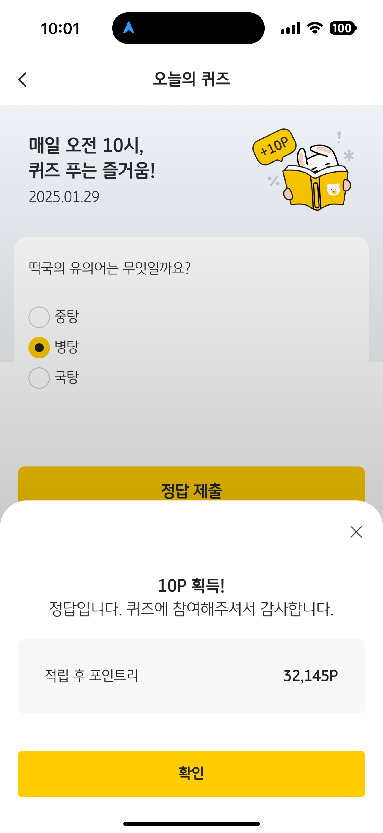 KB pay 오늘의 퀴즈 정답은 병탕입니다