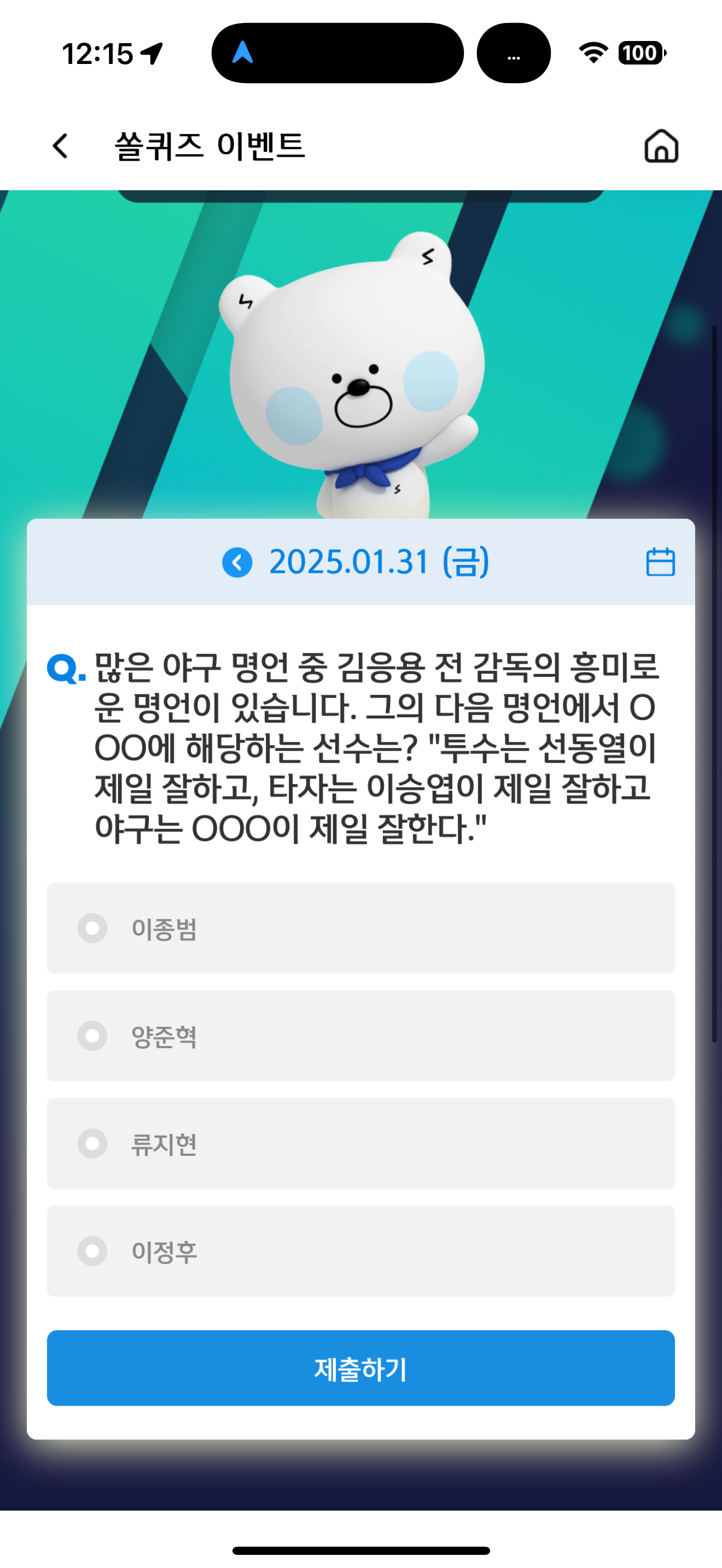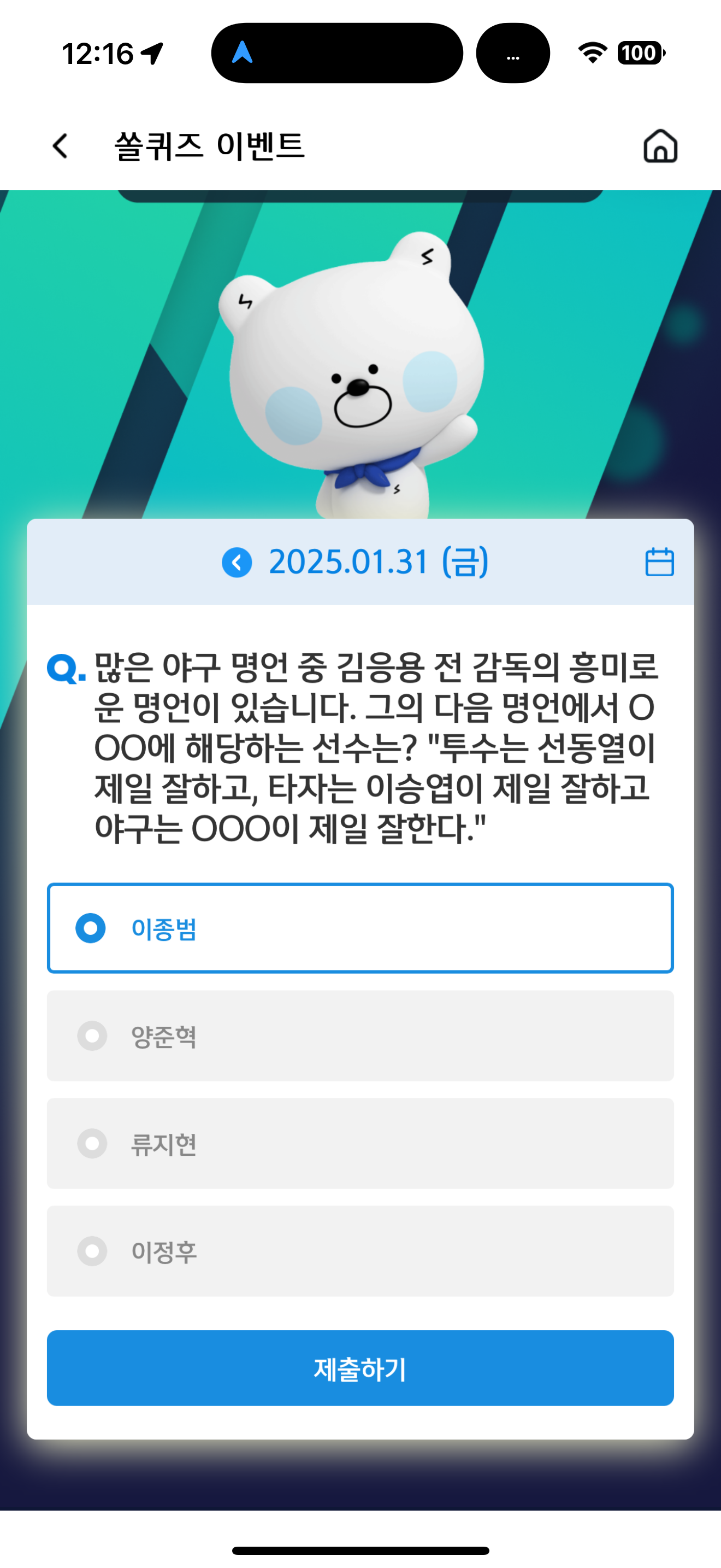 신한 슈퍼SOL 야구/상식 쏠퀴즈 1월 31일 문제입니다