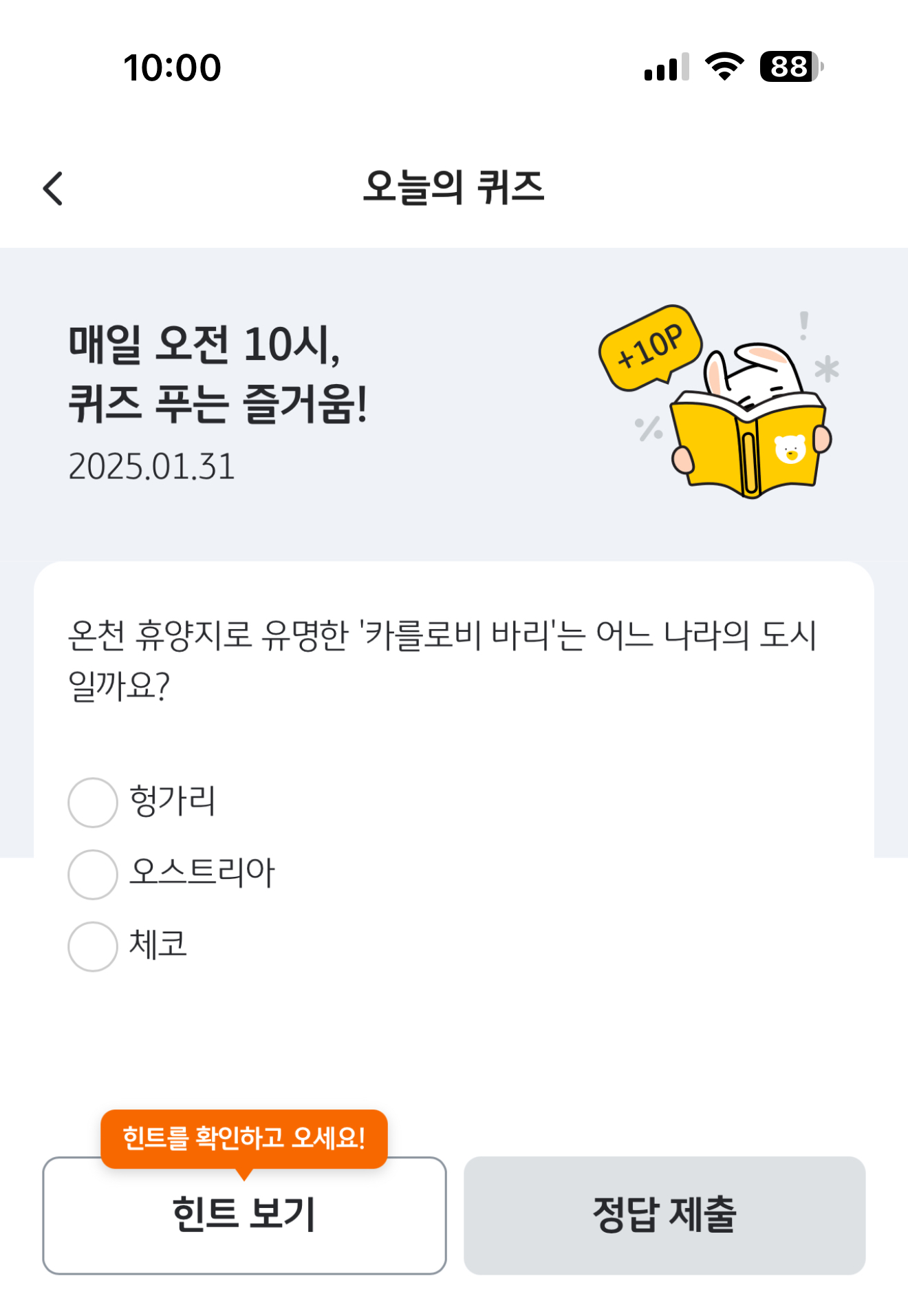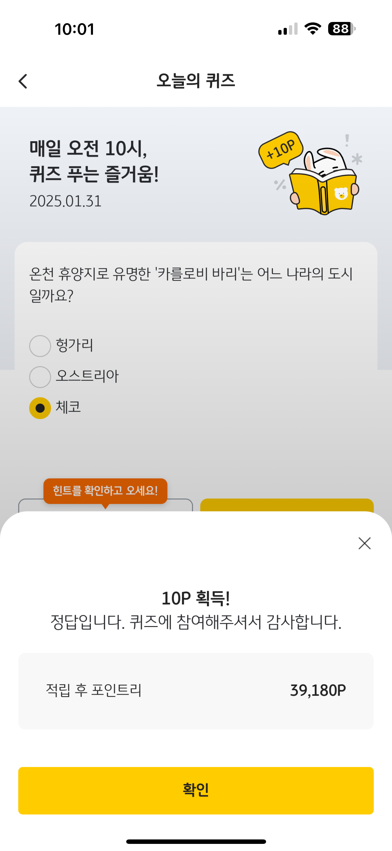 KB Pay 오늘의 퀴즈 정답은 체코 입니다
