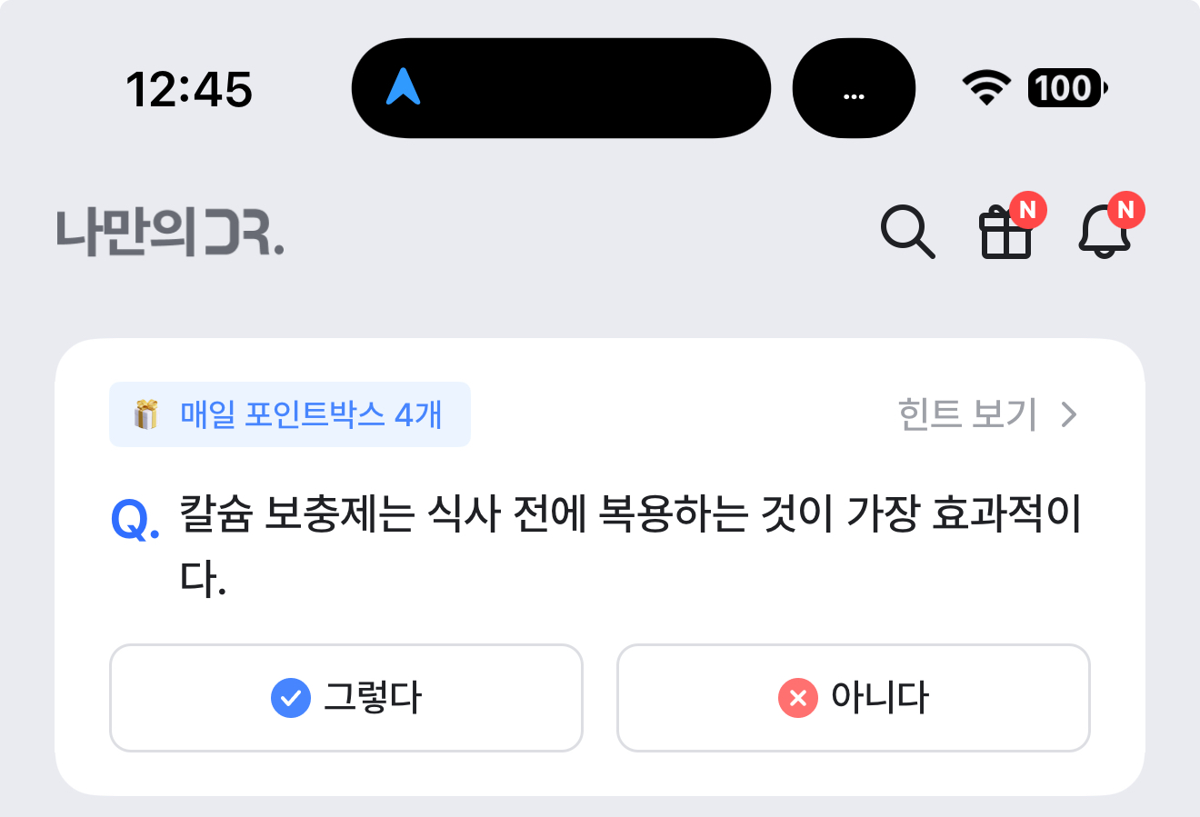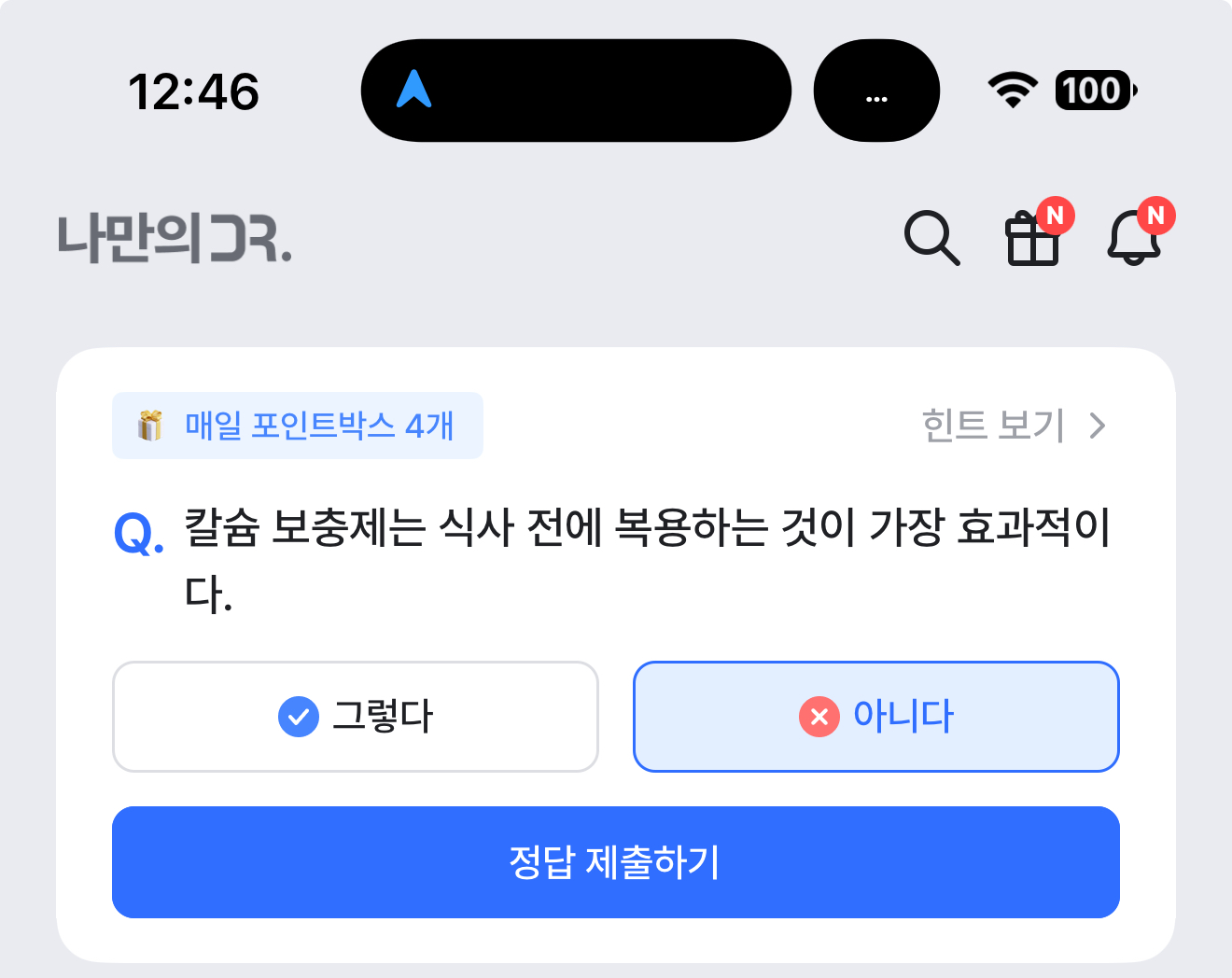 나만의 닥터 퀴즈 2월 1일 정답(칼슘 보충제는 식사 전에 복용하는 것이 가장 효과적이다)