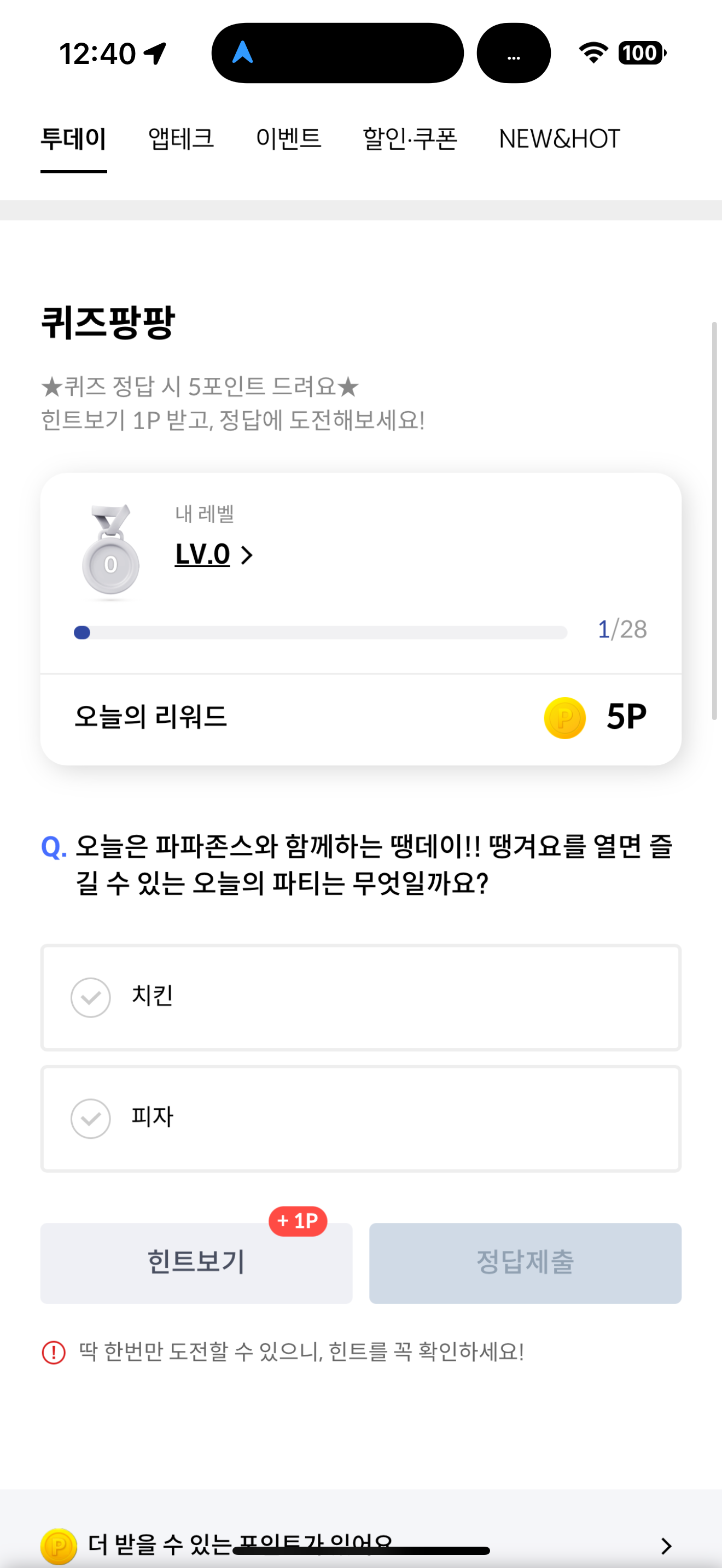 오늘은 파파존스와 함께하는 땡데이!! 땡겨요를 열면 즐길 수 있는 오늘의 파티는 무엇일까요? 보기는 1. 치킨 2. 피자 입니다. 파파존스하면 뭐죠. 땡겨요 앱에서는 파격적인 할인 혜택을 제공하니 잘 참고하셔서 활용해 보세요. 오랜만에 득템할 수 있는 기회입니다