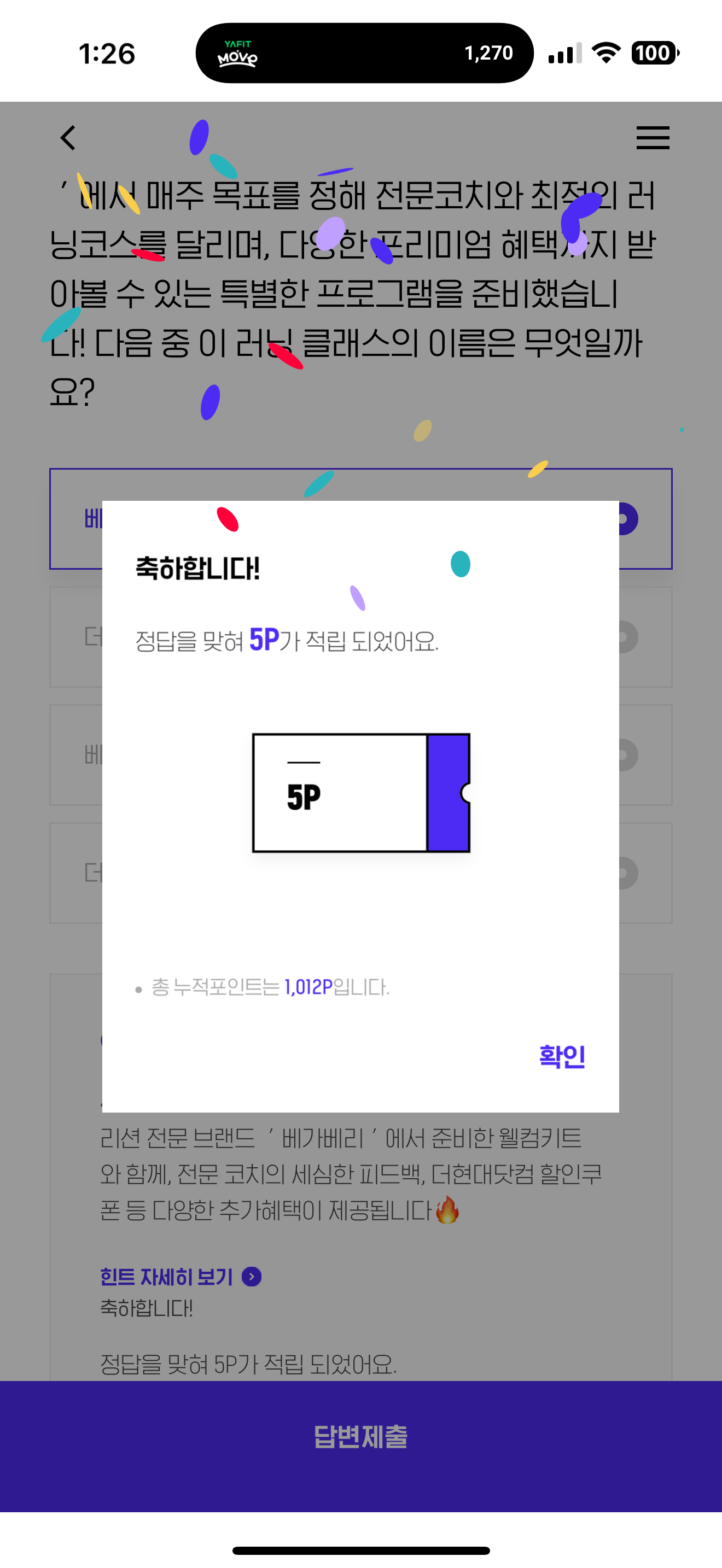 H포인트 퀴즈 정답은 베가베리 웰니스 러닝 프로그램 입니다