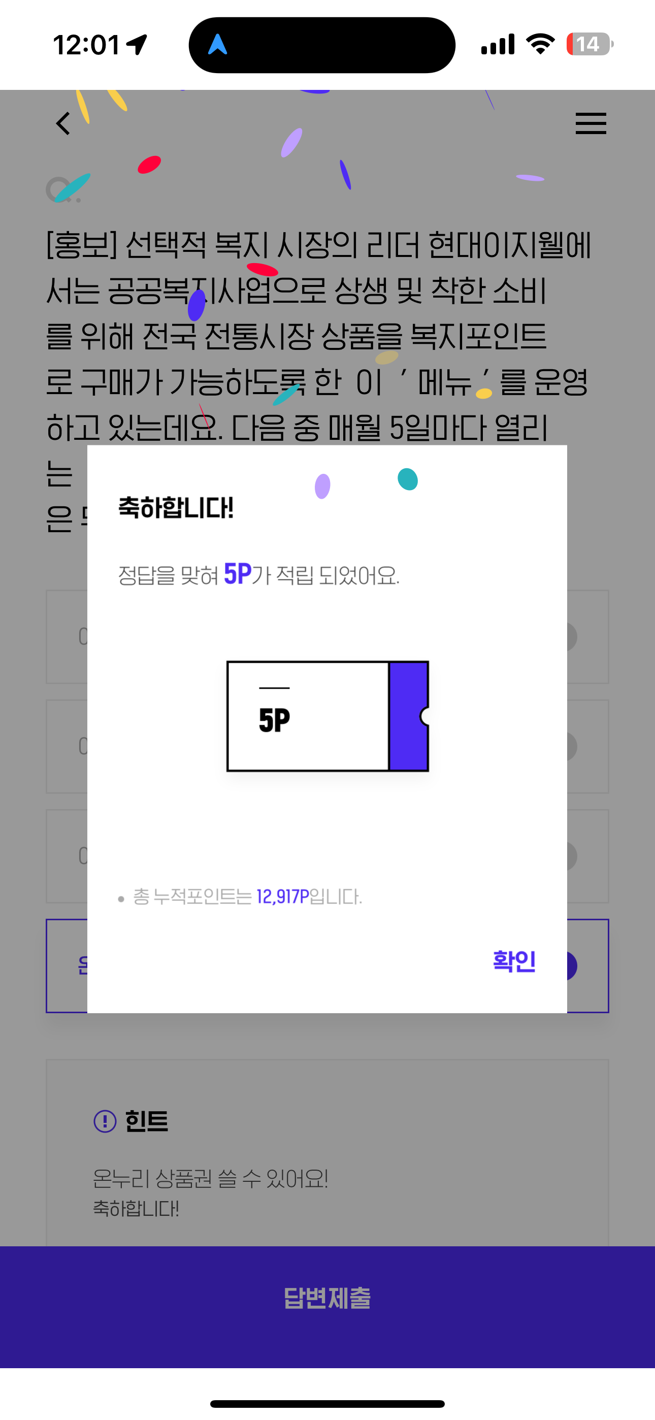 H포인트 퀴즈 정답은 온누리전통시장 입니다