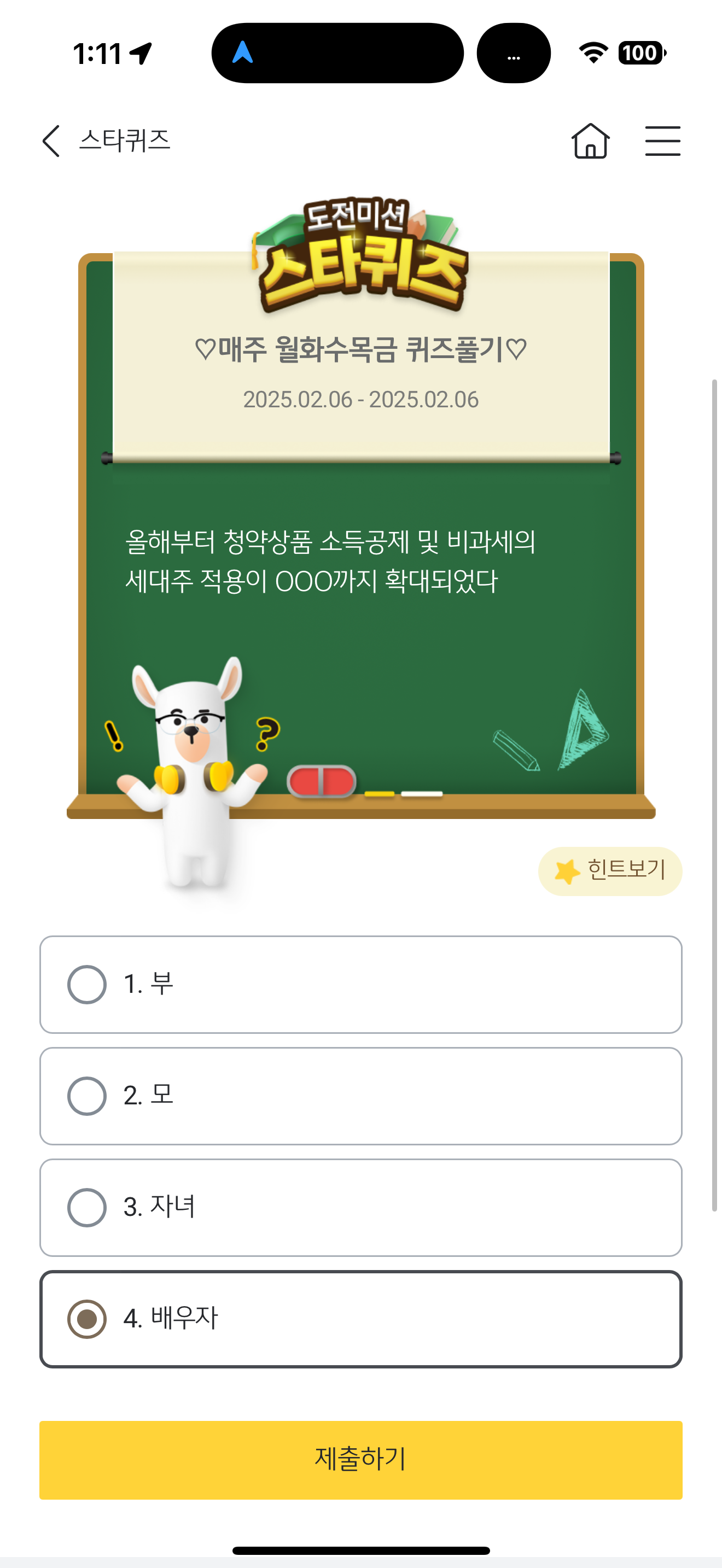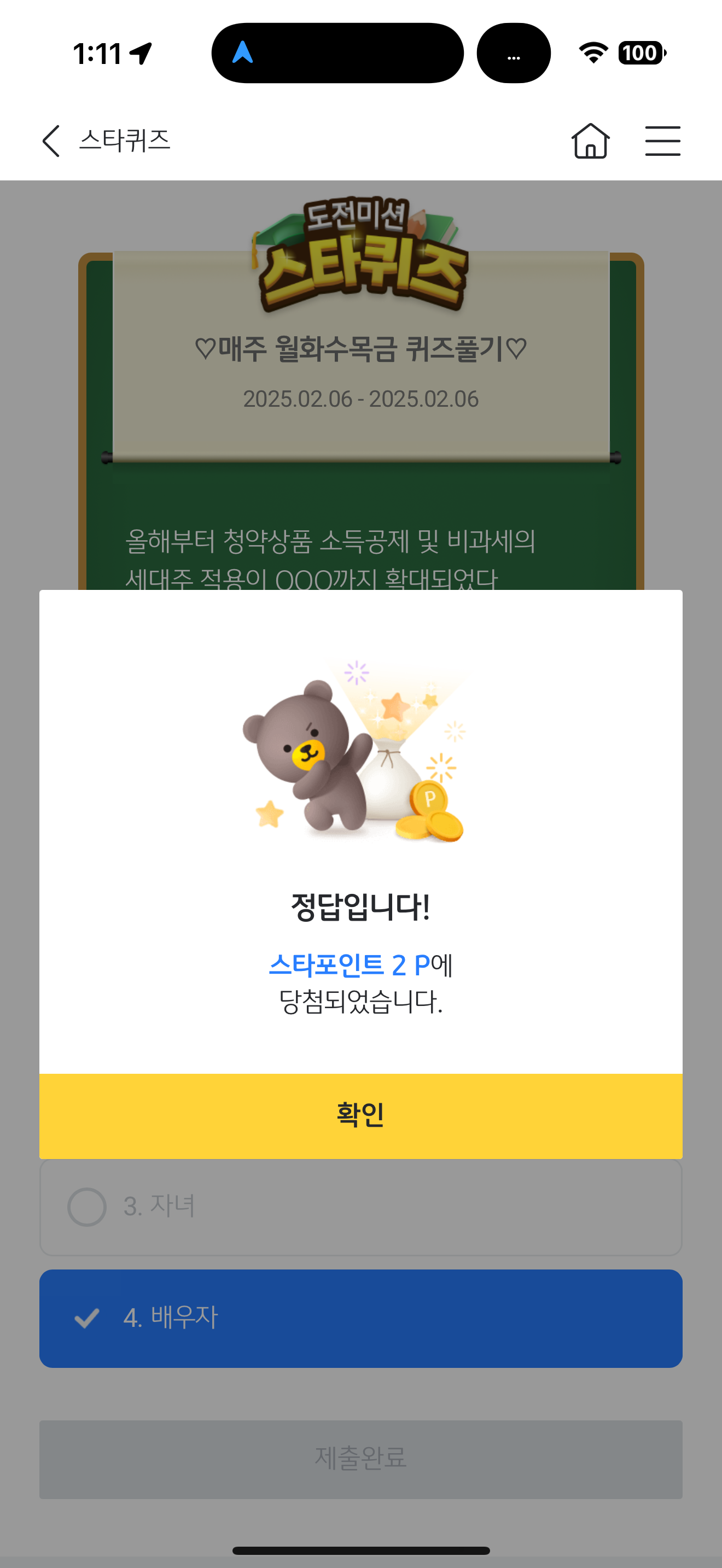 KB스타뱅킹 스타퀴즈 정답은 배우자 입니다