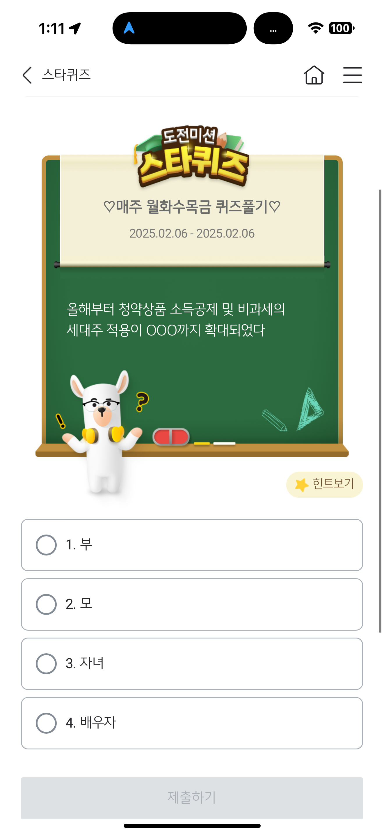 KB스타뱅킹 스타퀴즈 2월 6일 문제입니다