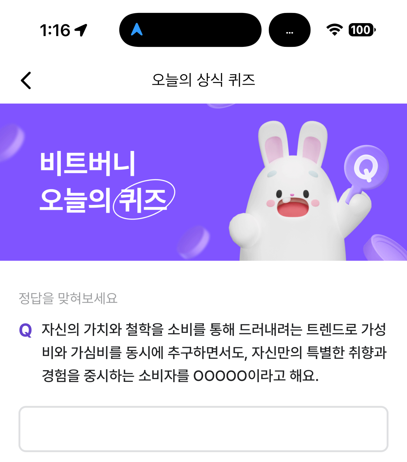 비트버니 오늘의 퀴즈 초성힌트는 ㅁㄴㅇㅇㅈ 입니다