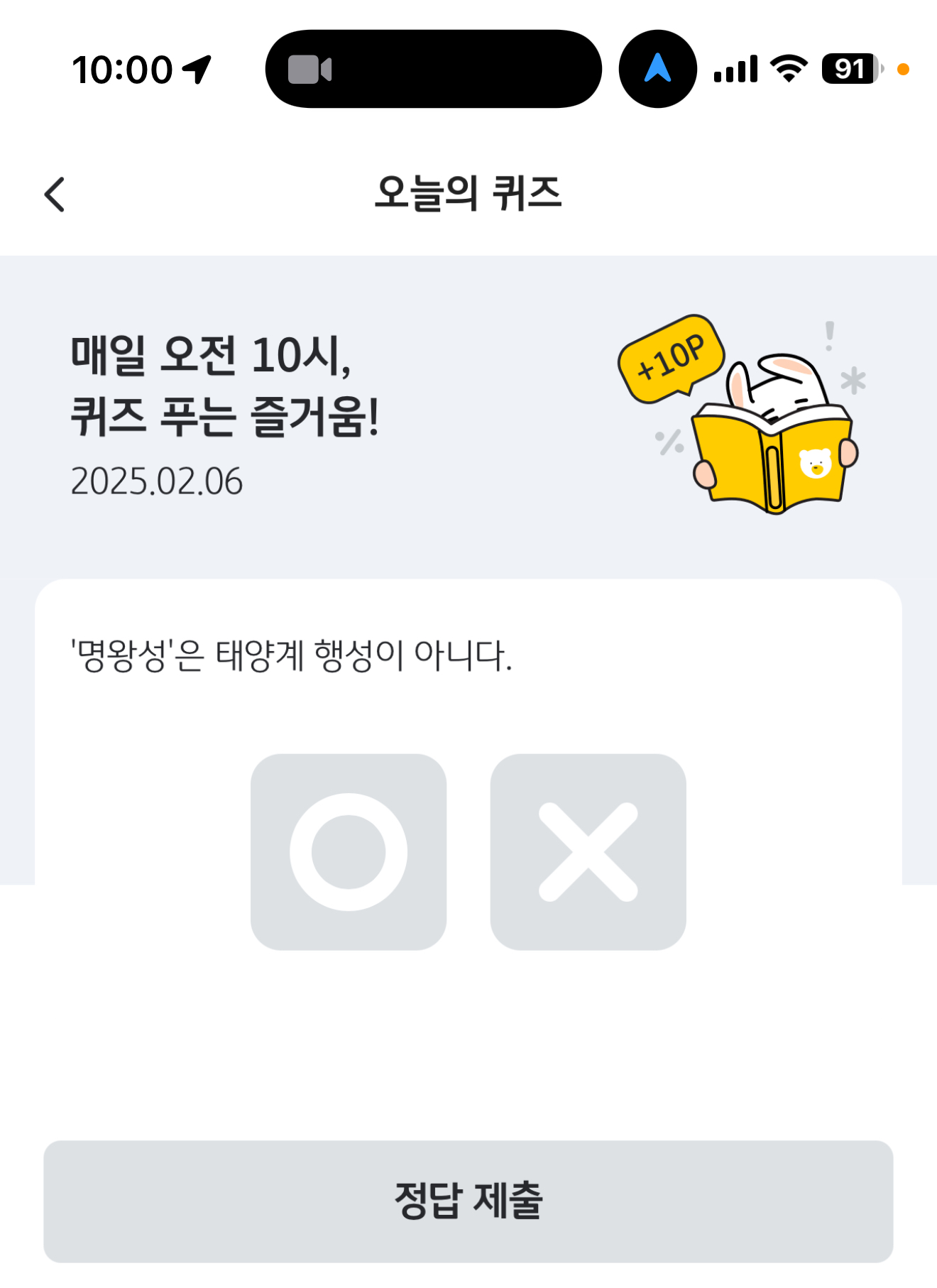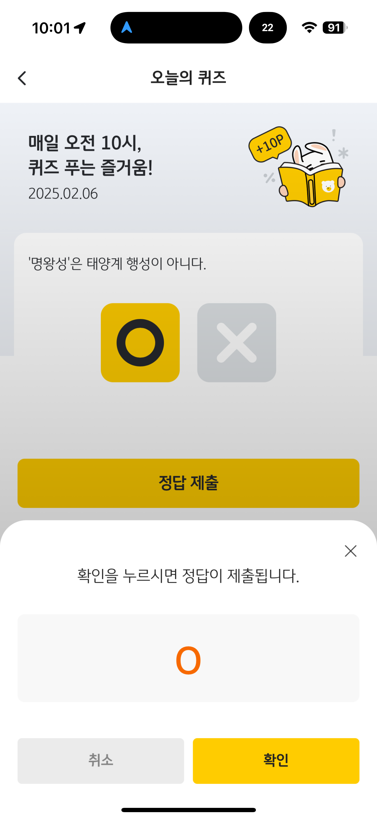 KB Pay 오늘의 퀴즈 정답은 O 입니다