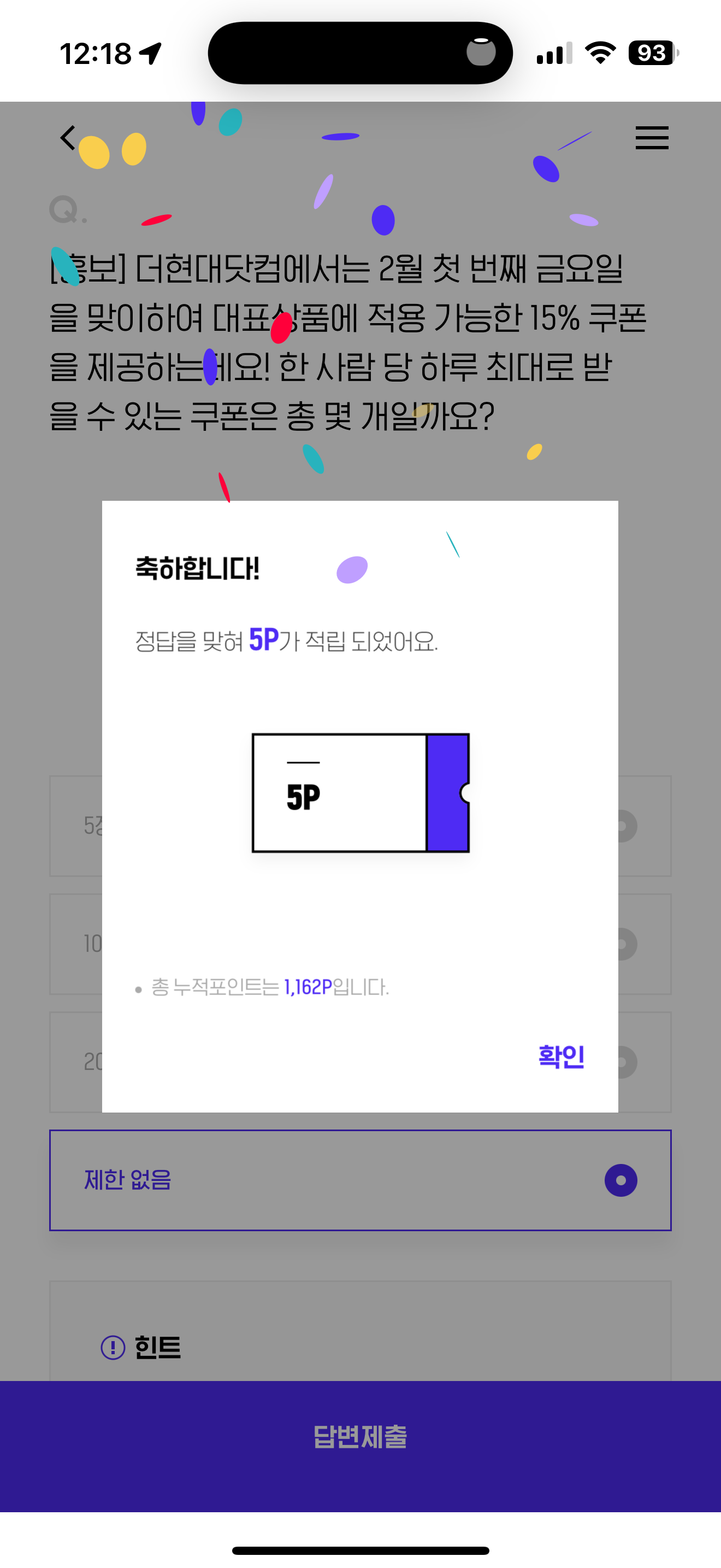 H포인트 퀴즈 정답은 제한 없음 입니다