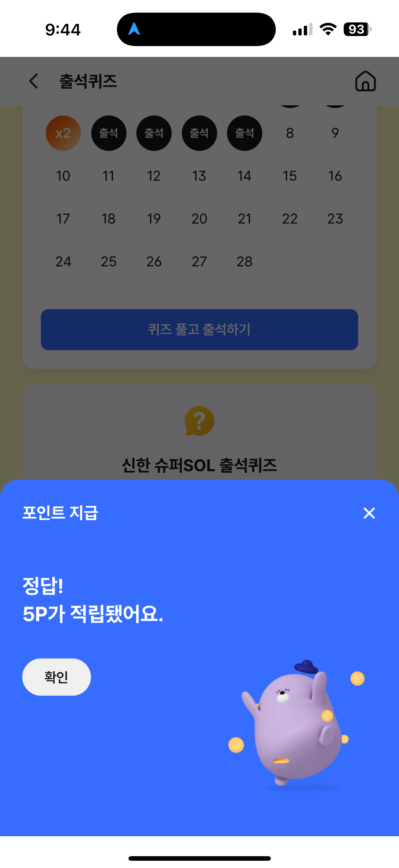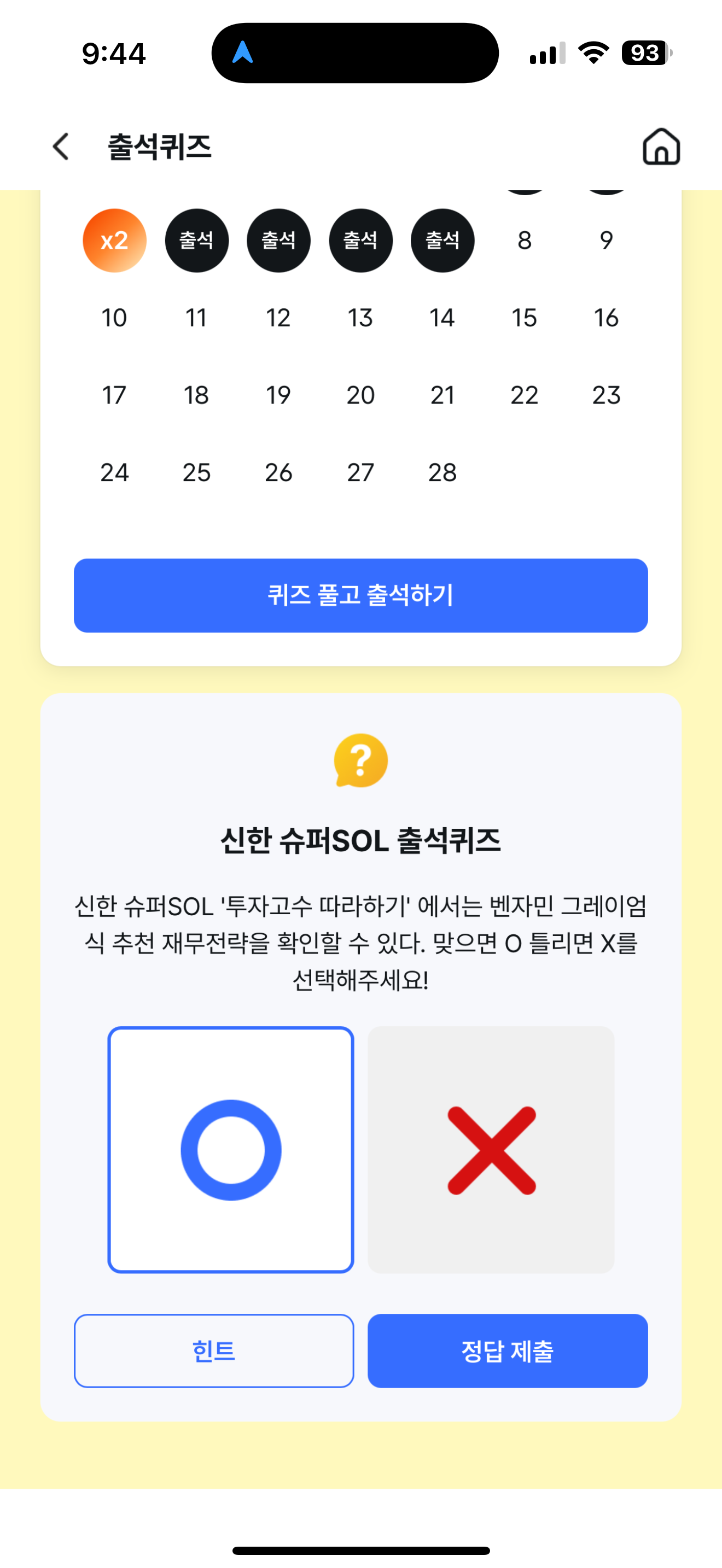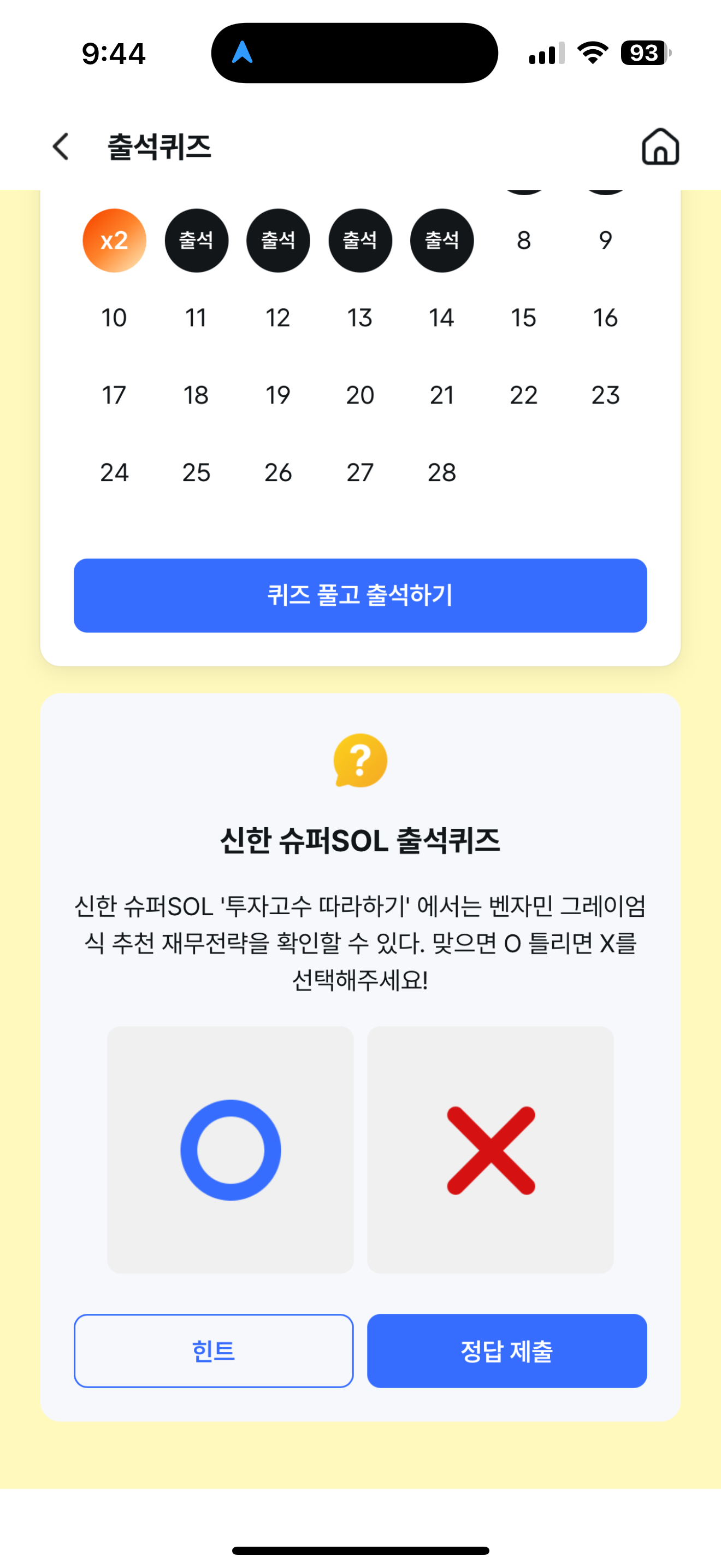 신한 슈퍼SOL 출석퀴즈 정답은 O 입니다
