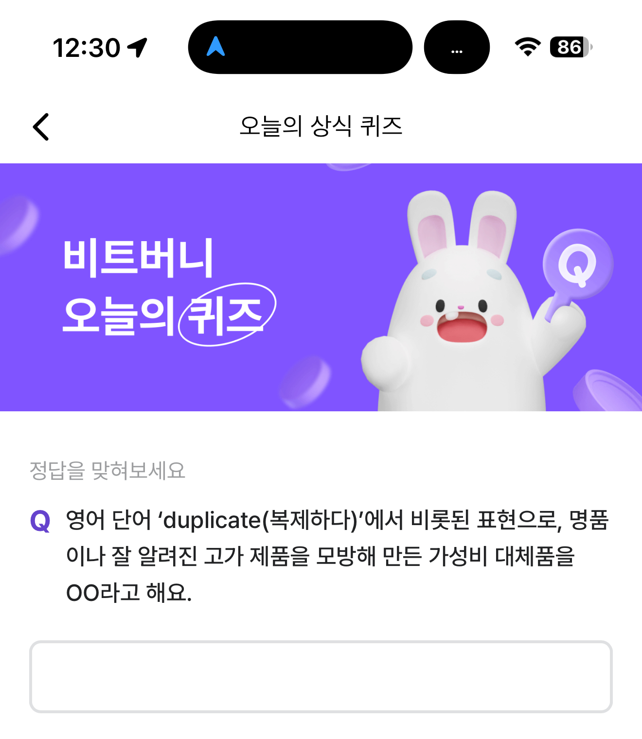 비트버니 오늘의 퀴즈 2월 9일 ㄷㅍ 정답(영어 단어 'duplicate(복제하다)'에서 비롯된 표현으로, 명품이나 잘 알려진 고가 제품을 모방해 만든 가성비 대체품을 OO라고 해요)