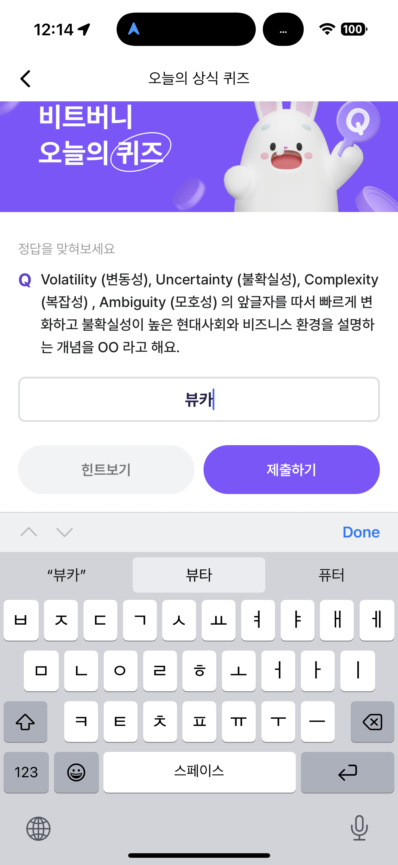비트버니 오늘의 퀴즈 정답은 뷰카 입니다