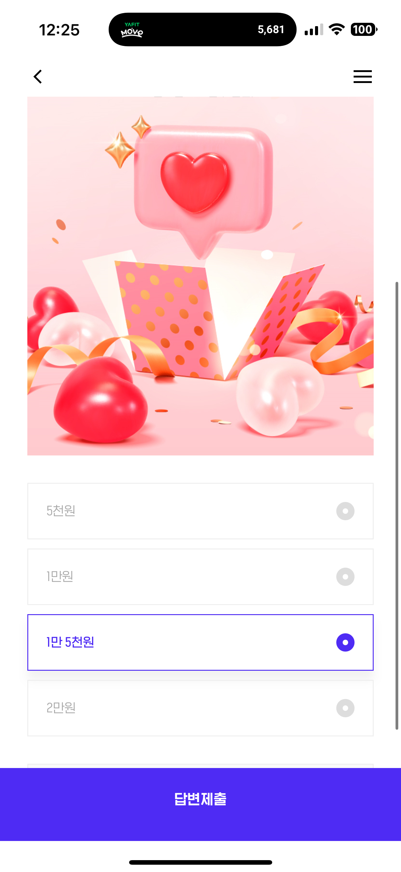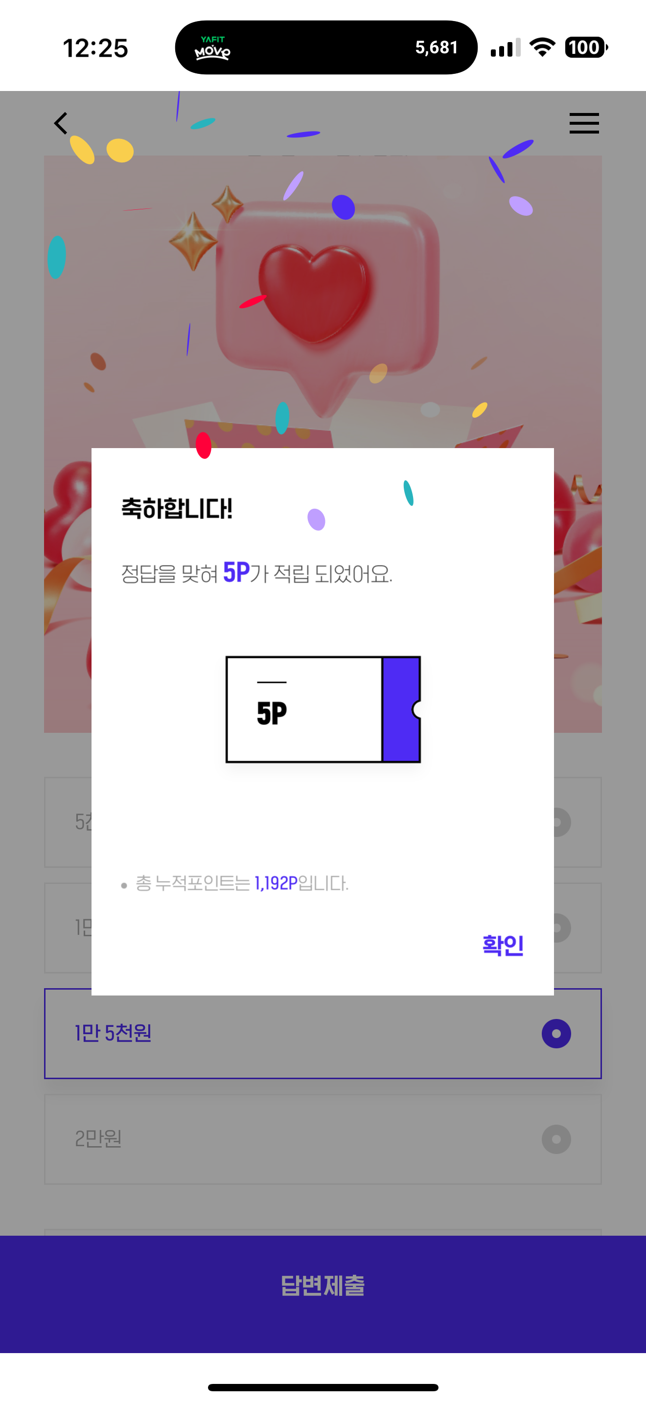 H포인트 퀴즈 정답은 1만 5천원 입니다
