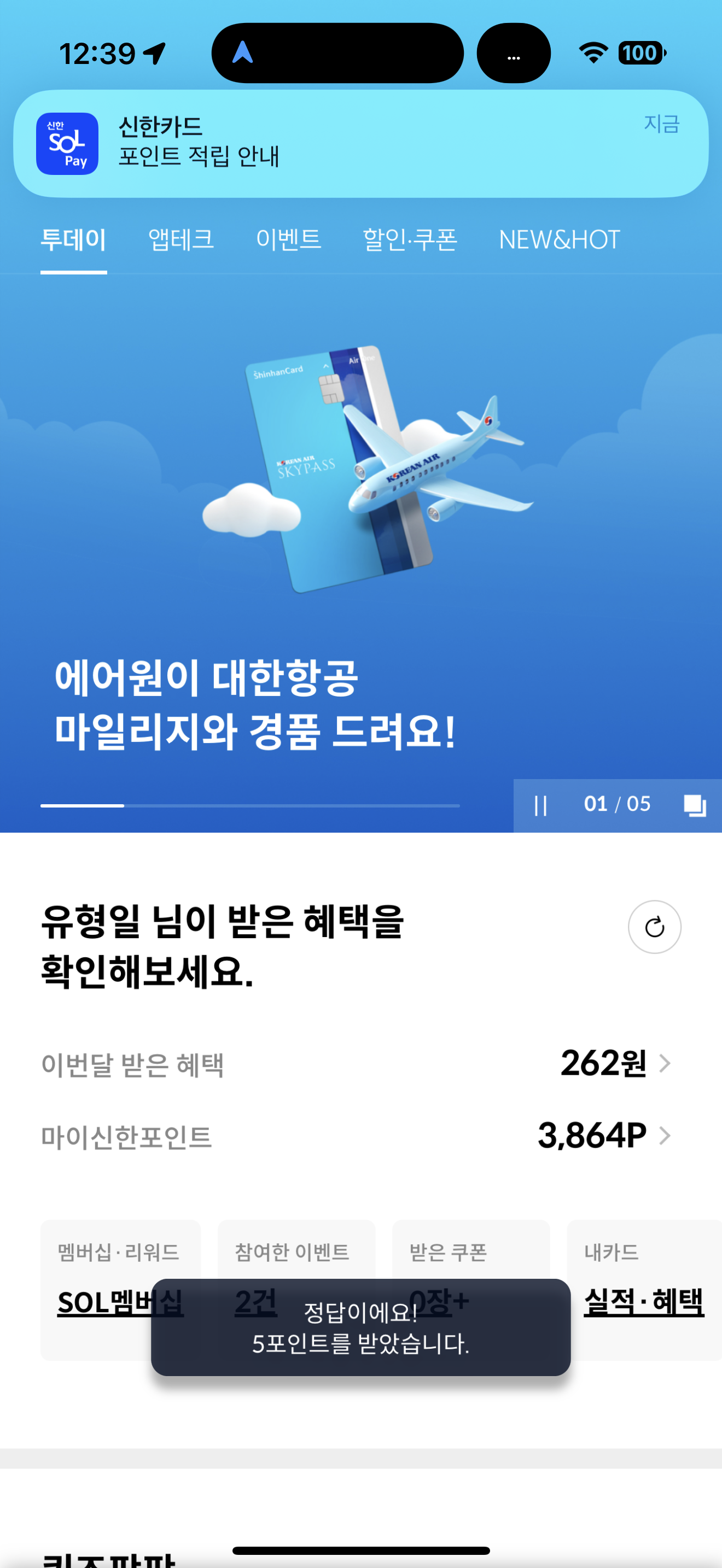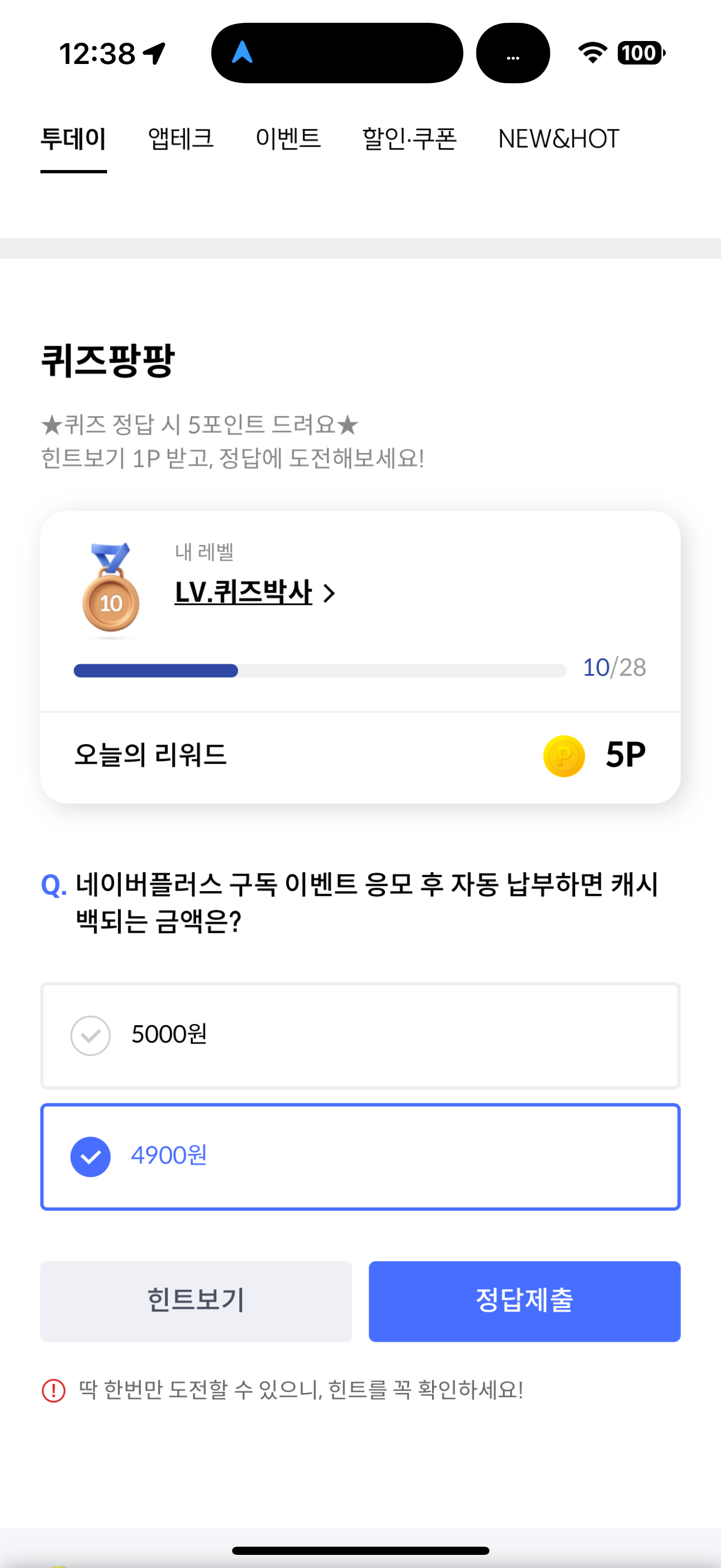 신한카드 퀴즈팡팡 정답은 4900원 입니다