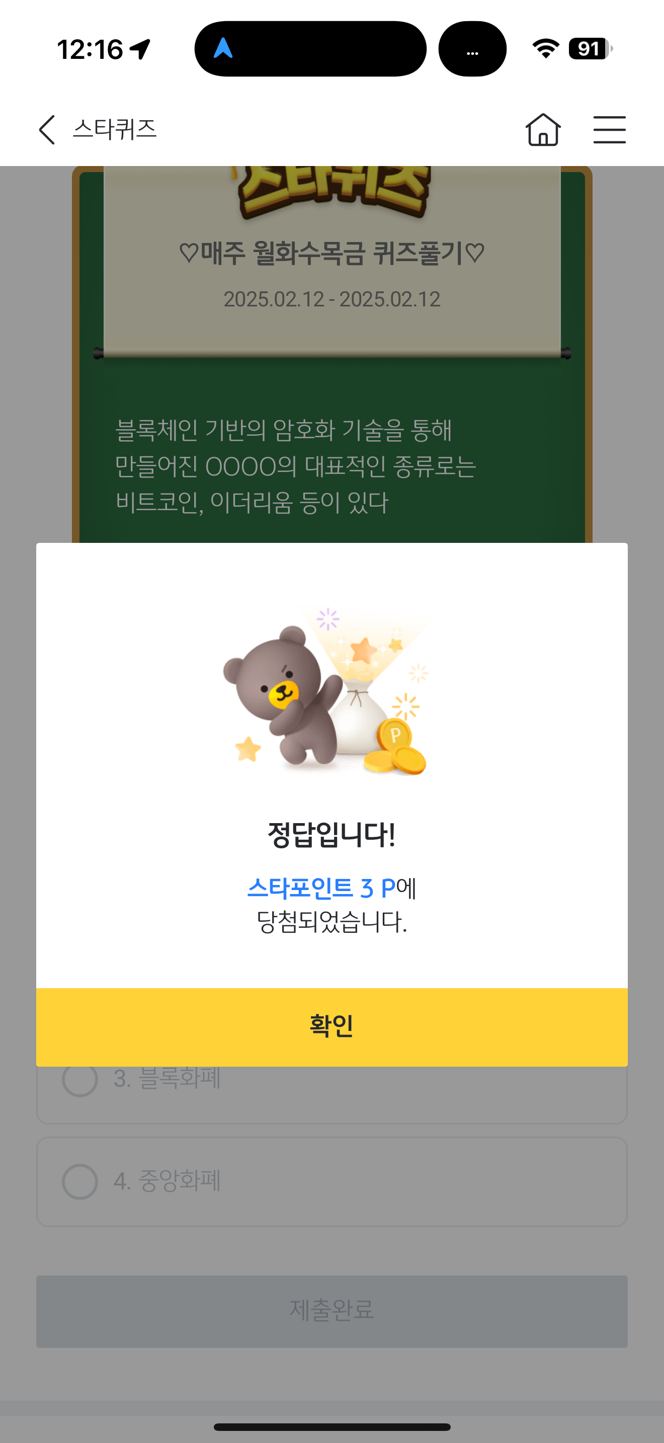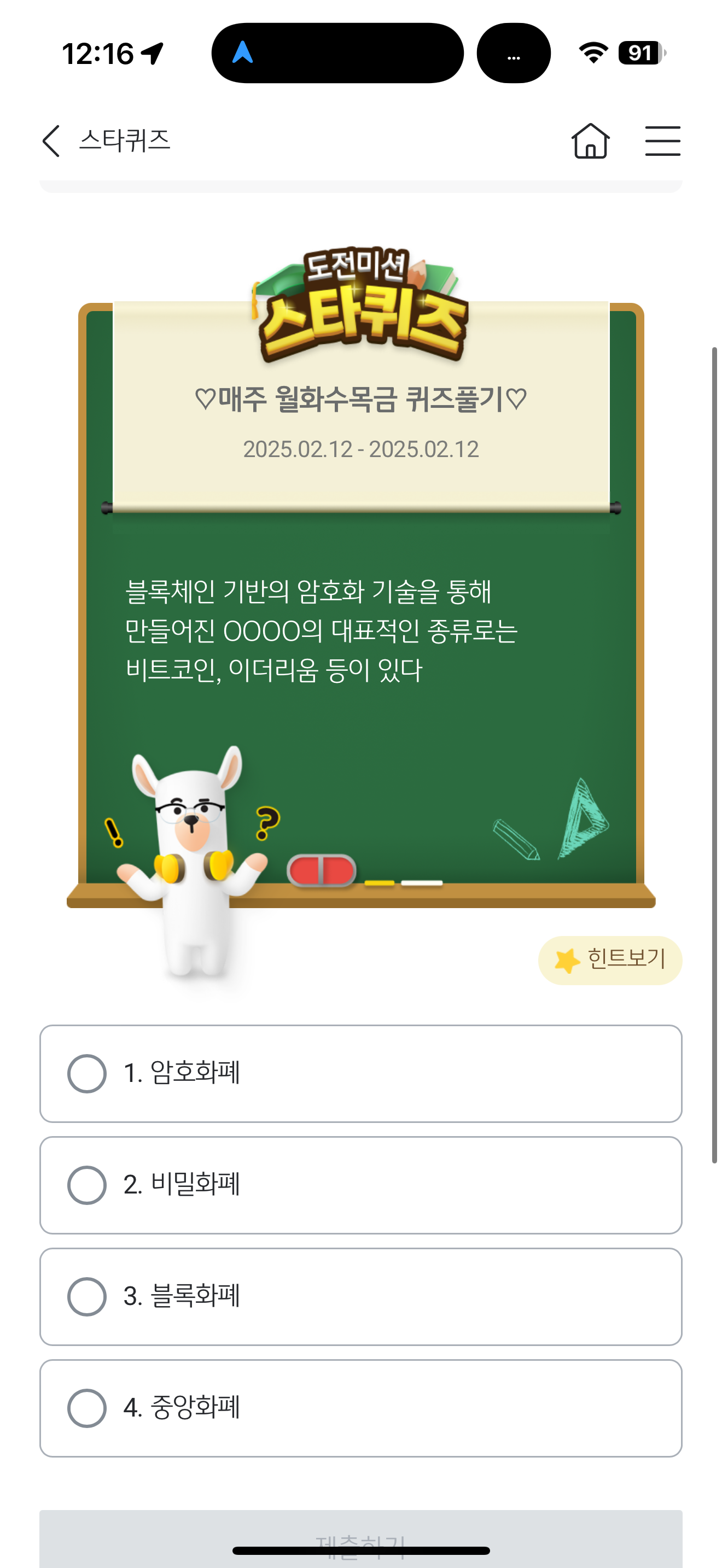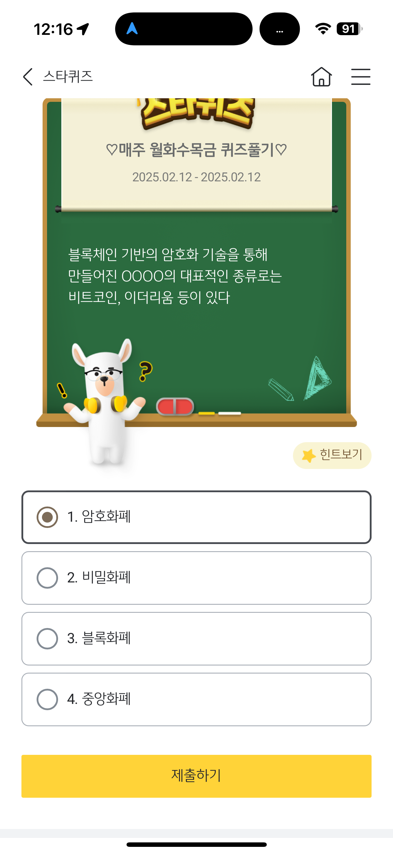 KB스타뱅킹 스타퀴즈 정답은 1. 암호화폐 입니다