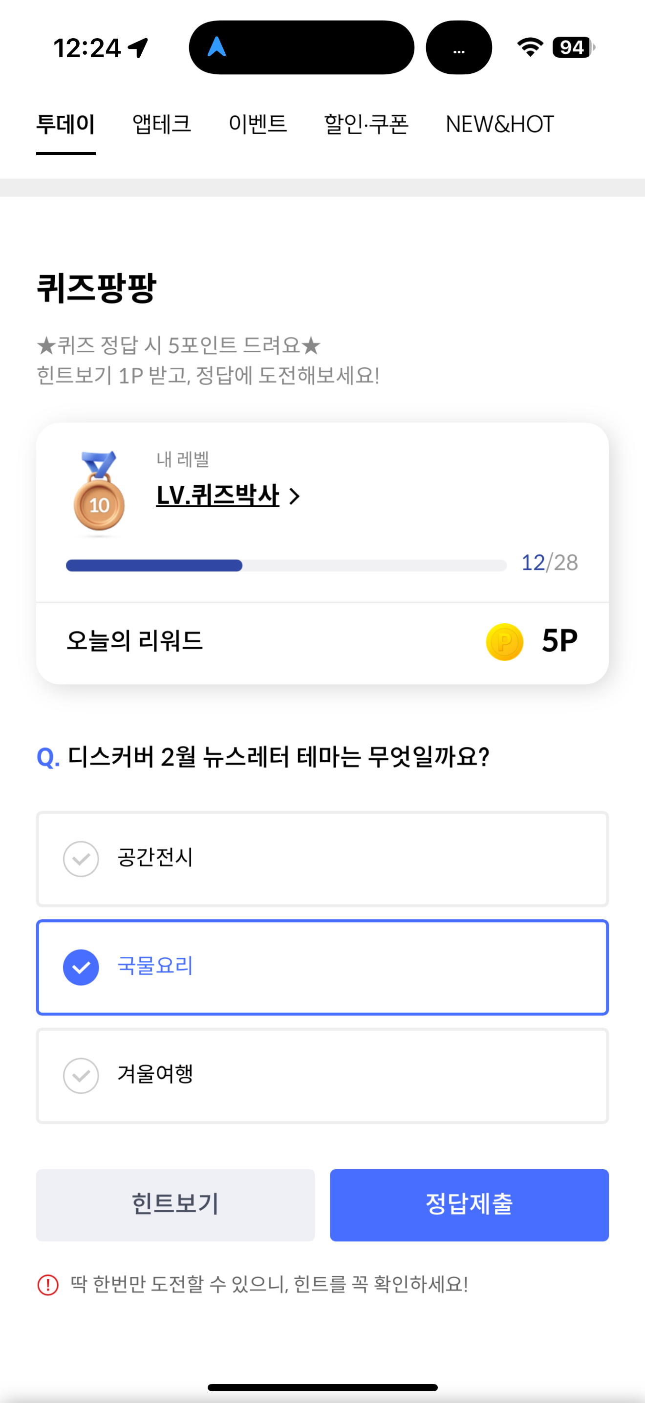 신한카드 퀴즈팡팡 정답은 국물요리 입니다