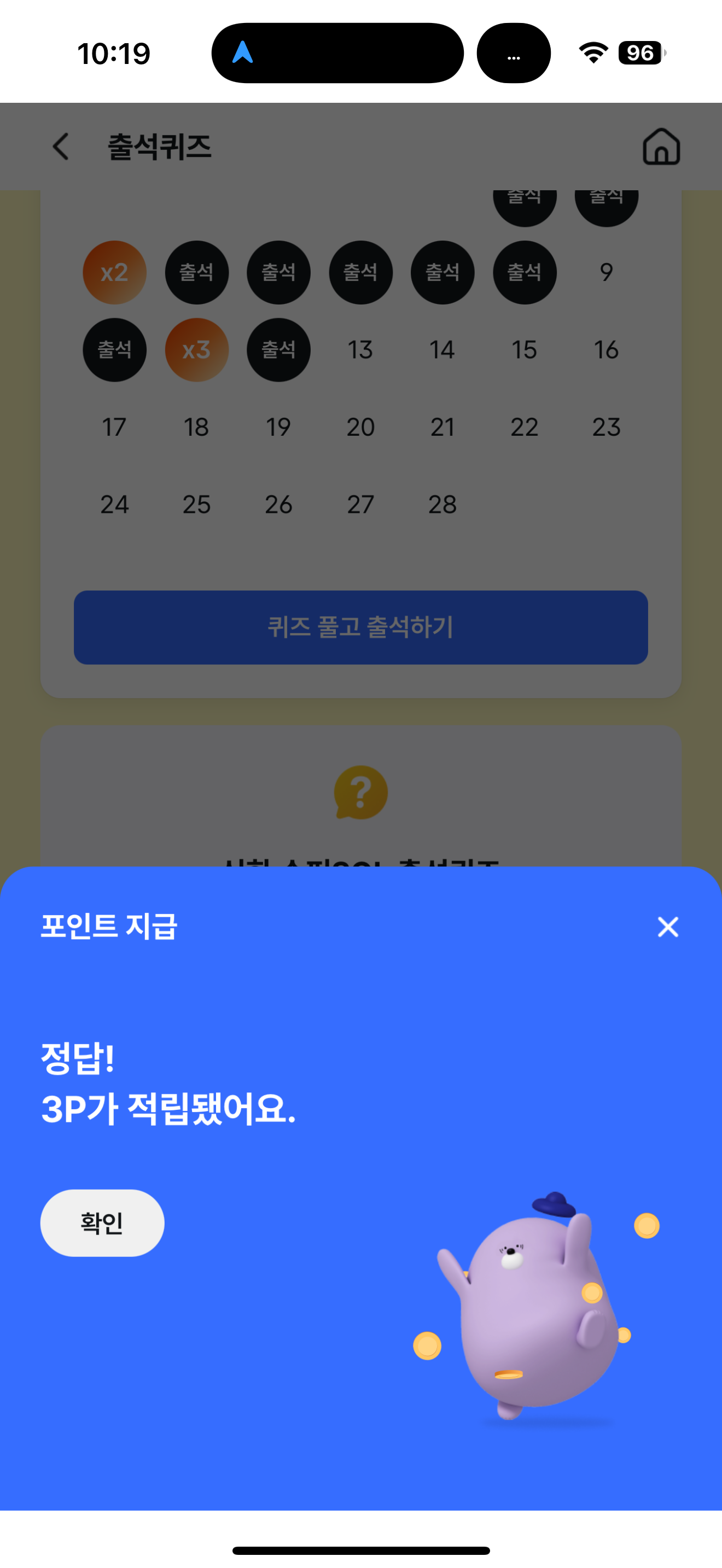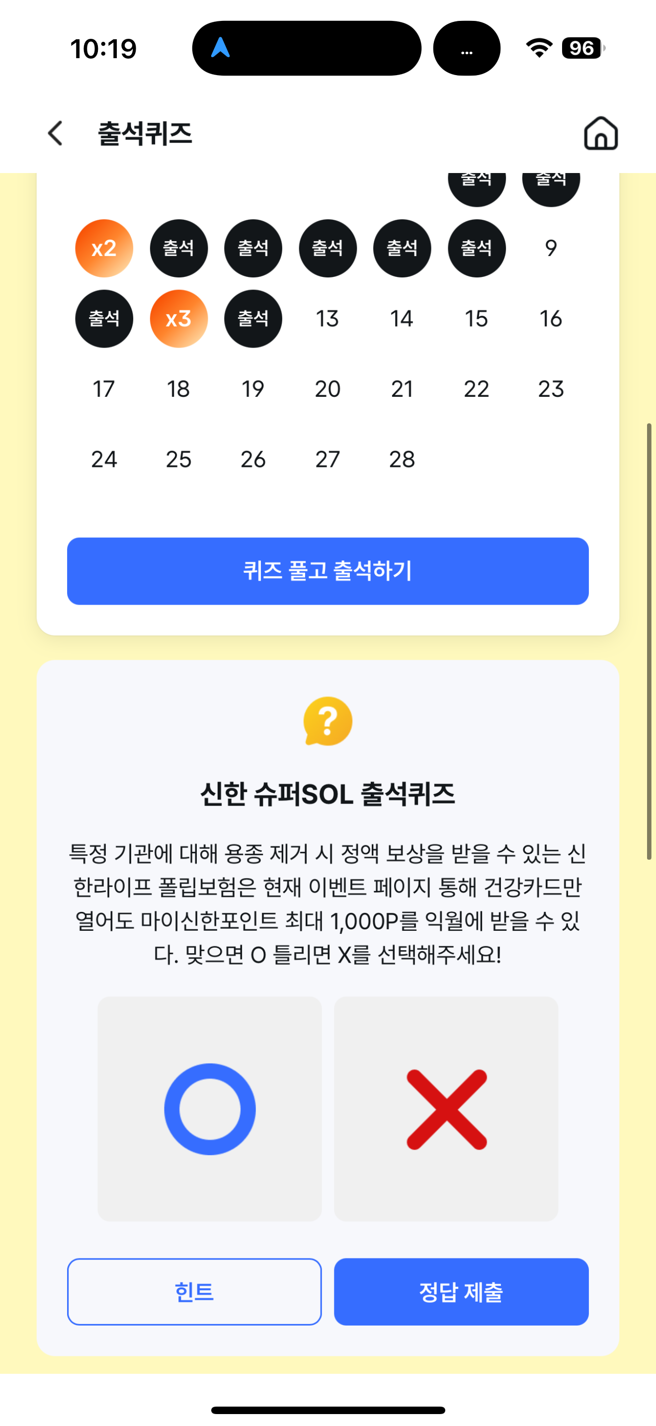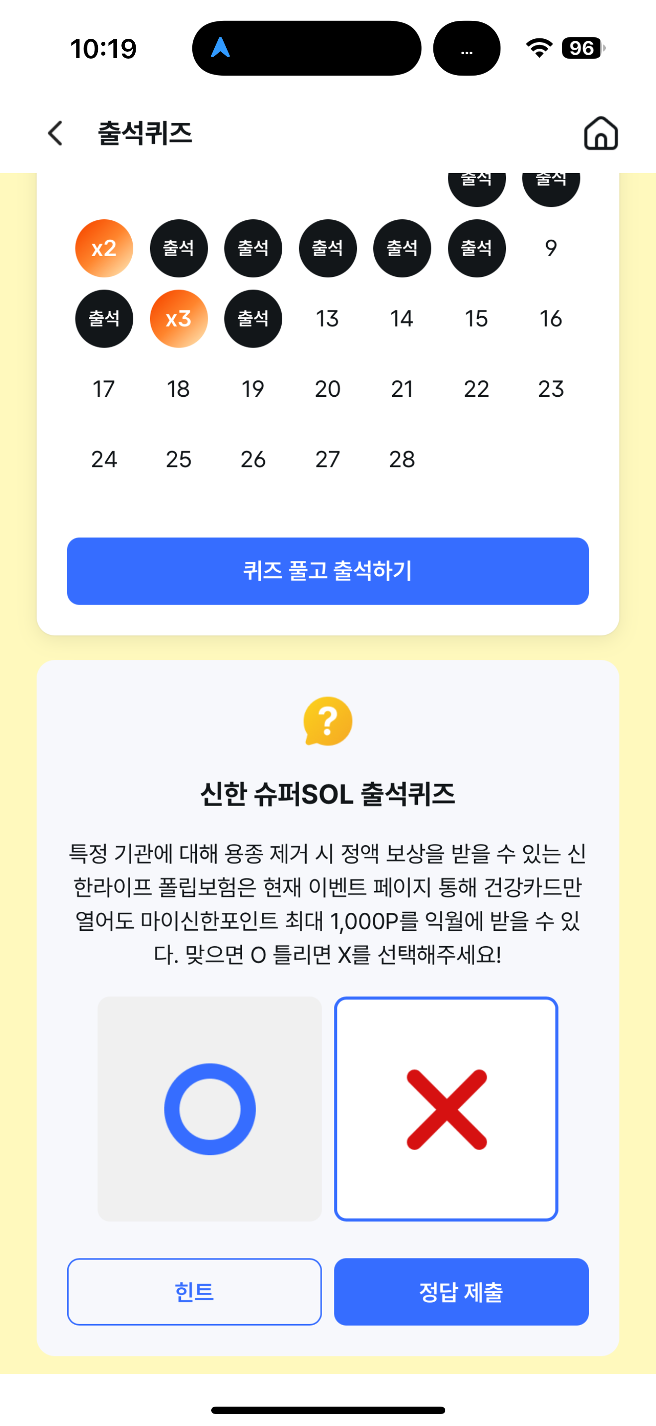 신한 슈퍼SOL 출석퀴즈 정답은 X 입니다