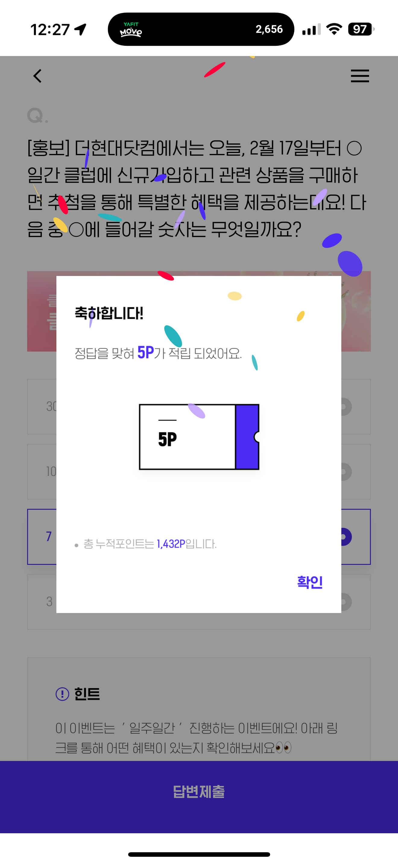 H포인트 퀴즈 2월 17일 문제입니다