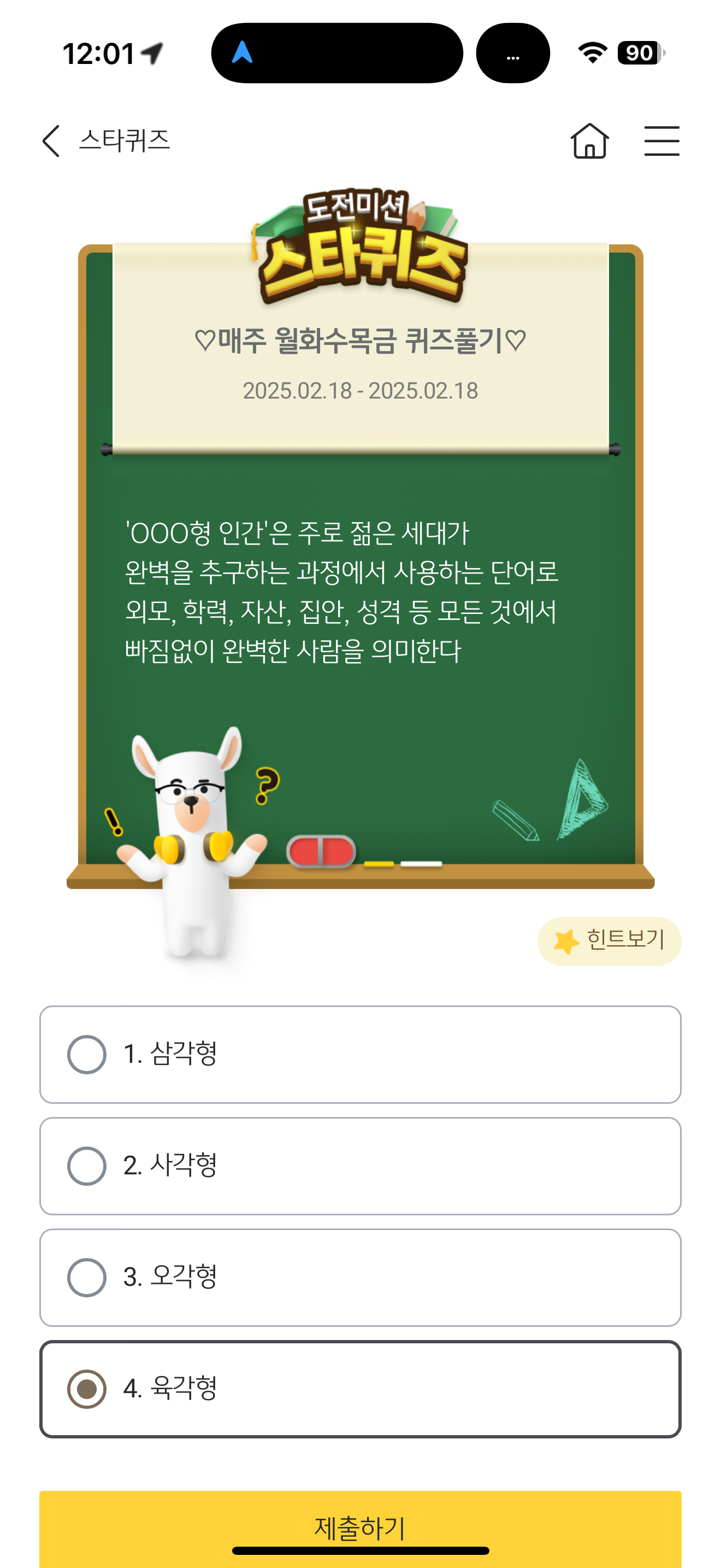 KB스타뱅킹 스타퀴즈 정답은 4. 육각형 입니다