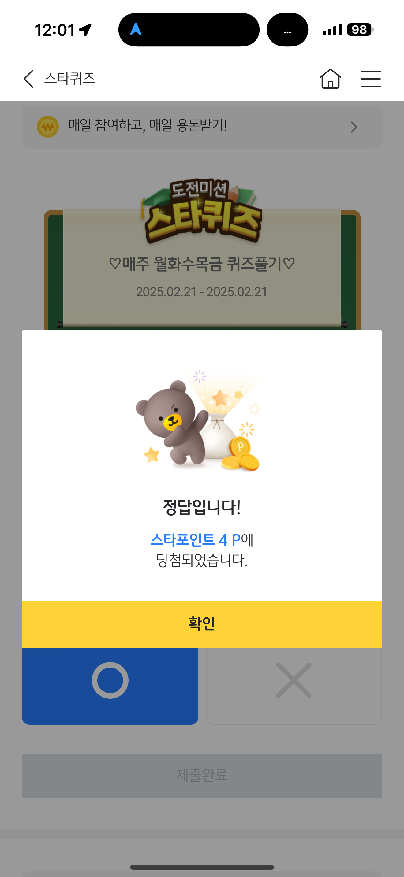 KB스타뱅킹 스타퀴즈 정답은 O 입니다