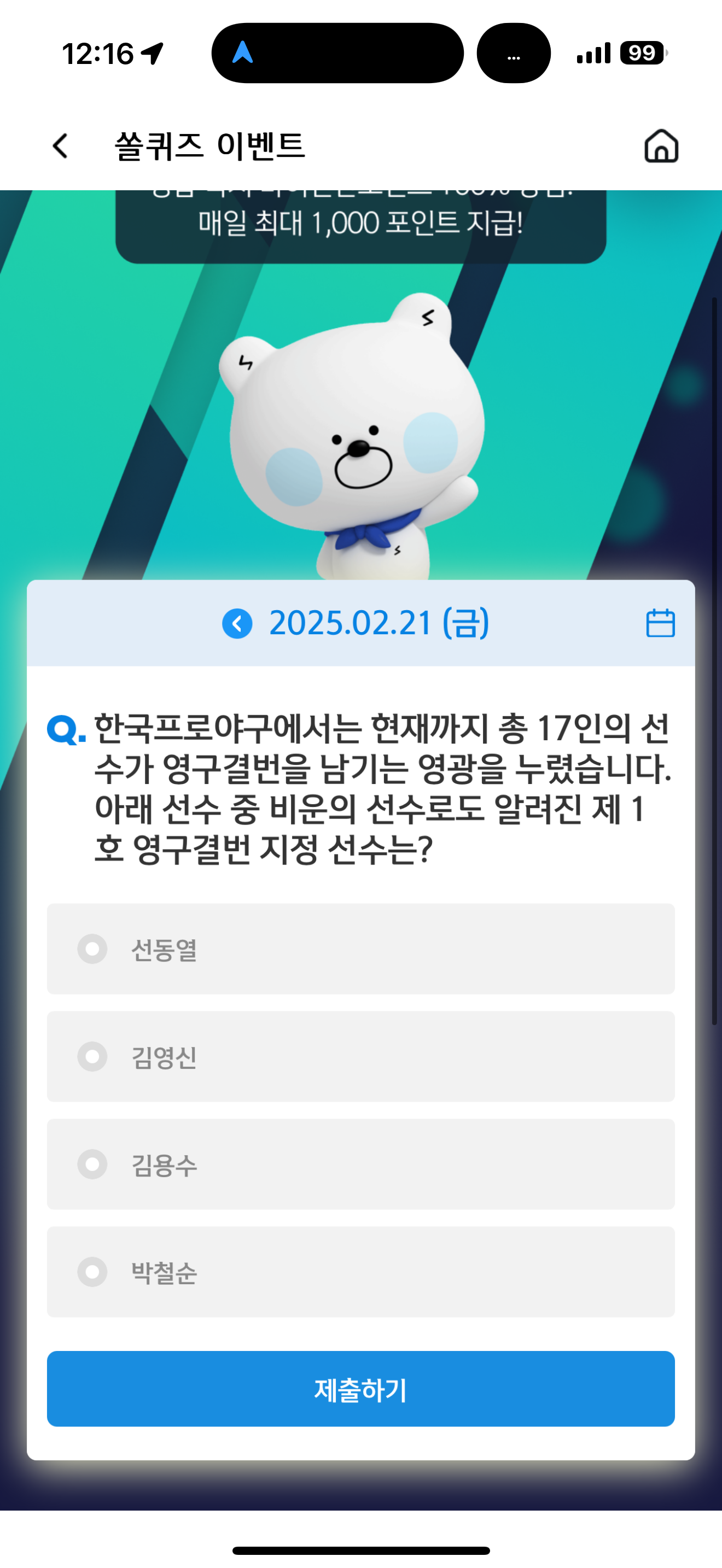 신한 슈퍼SOL 야구/상식 쏠퀴즈 2월 21일 문제입니다