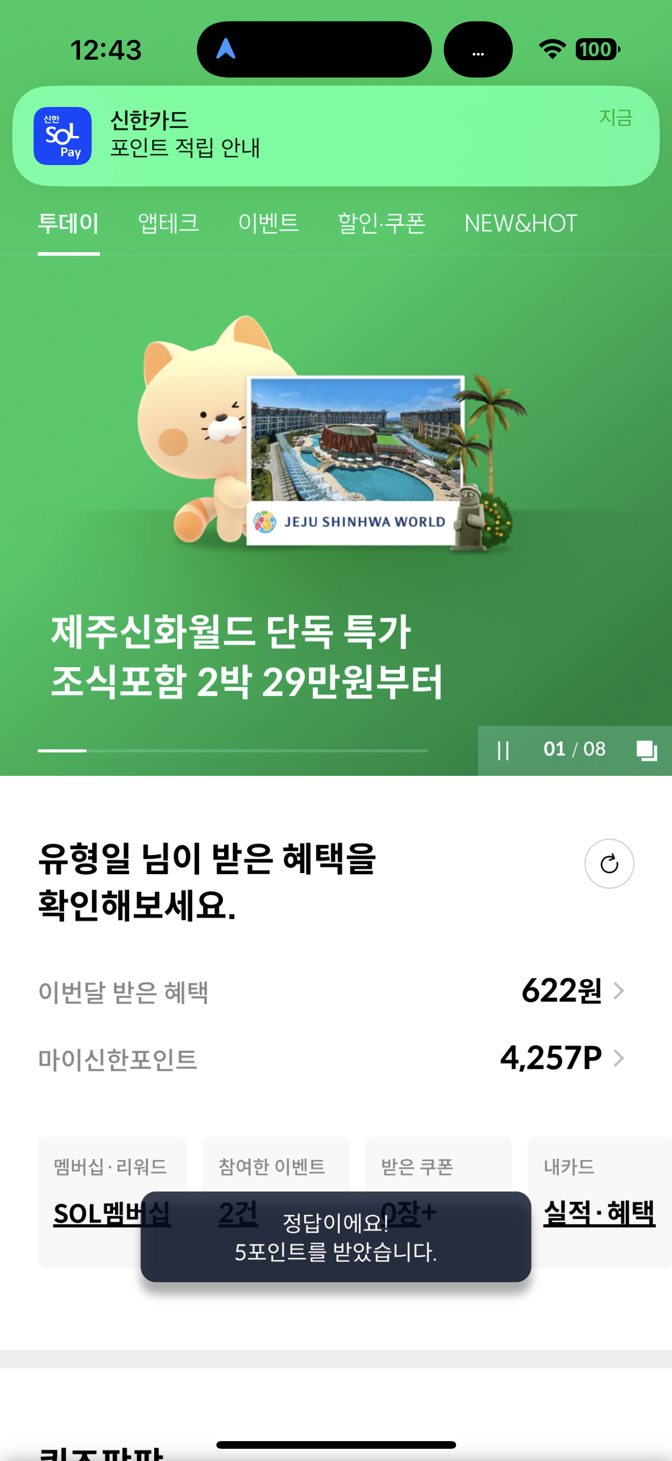 신한카드 퀴즈팡팡 2월 22일 문제입니다