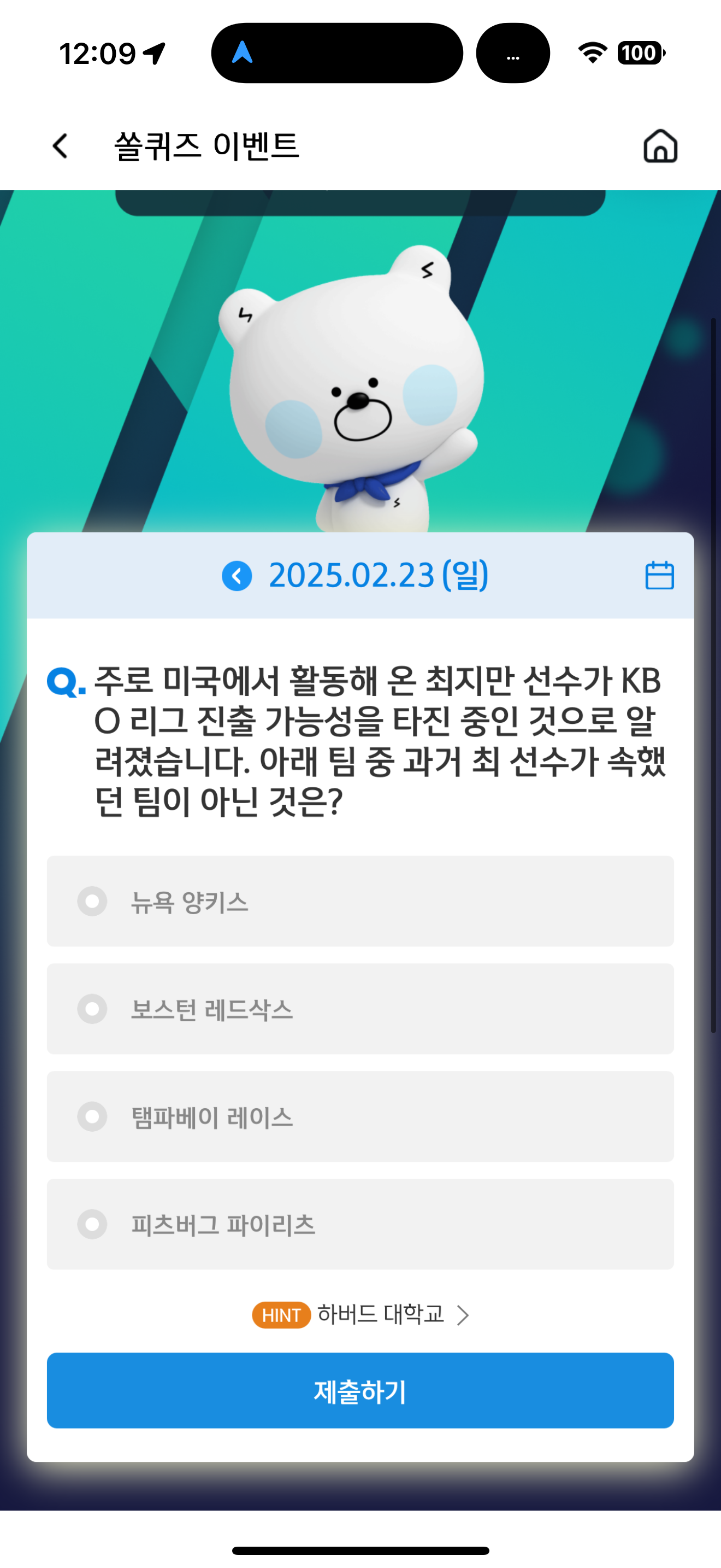신한 슈퍼SOL 야구/상식 쏠퀴즈 2월 23일 문제입니다