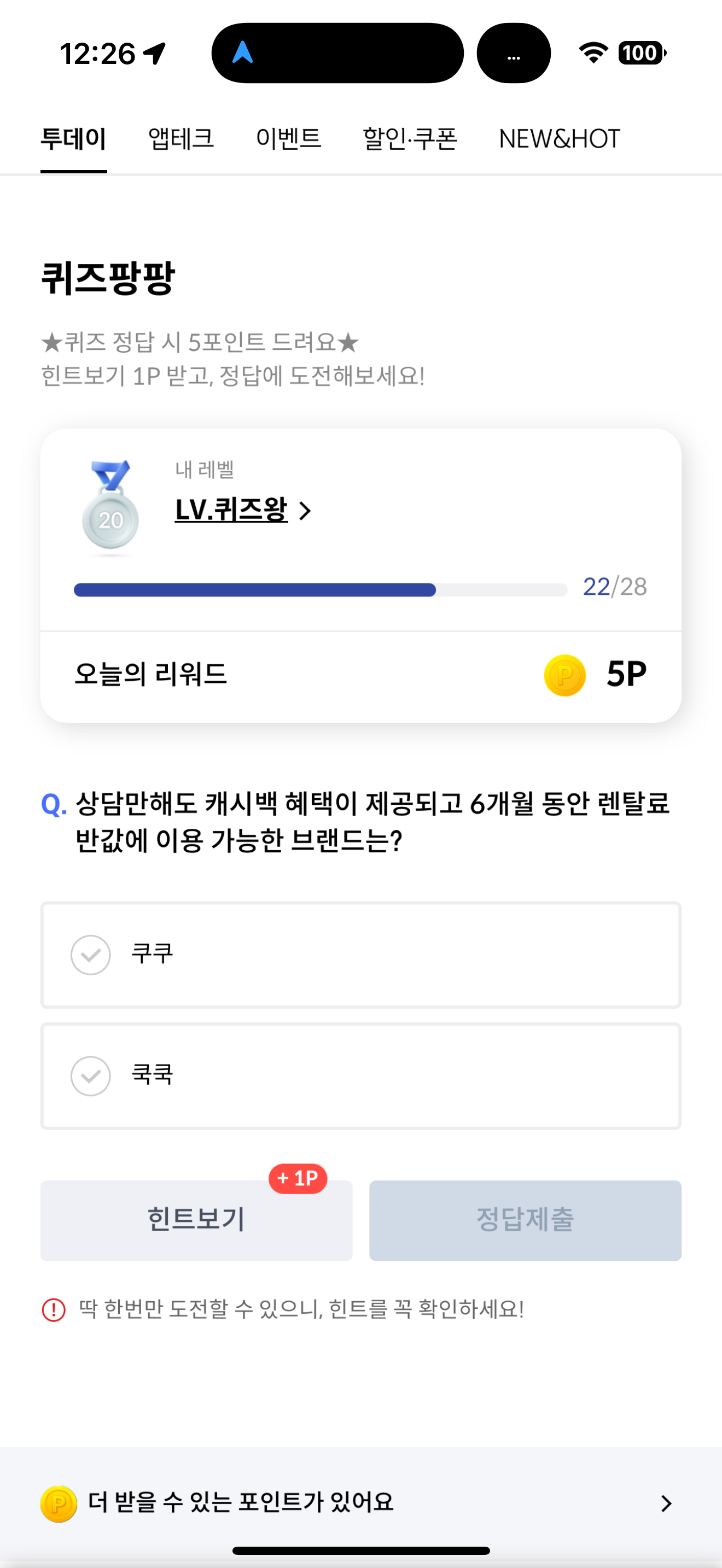 상담만해도 캐시백 혜택이 제공되고 6개월 동안 렌탈료 반값에 이용 가능한 브랜드는? 보기는 1. 쿠쿠 2. 쿡쿡 입니다. 상담만해도 캐시백이 제공된다니 괜찮죠? 그리고 만약 렌탈을 이용해도 6개월 동안은 반값 혜택이 주어진다고 하니 서비스 이용하실 때 참고해 보세요