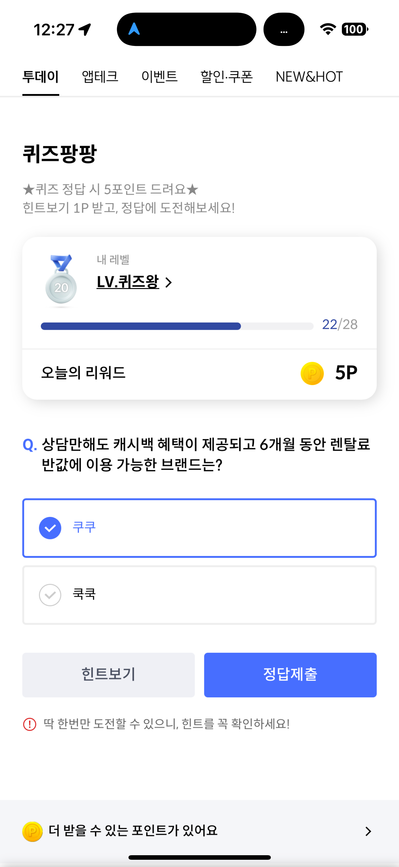 신한카드 퀴즈팡팡 정답은 쿠쿠 입니다