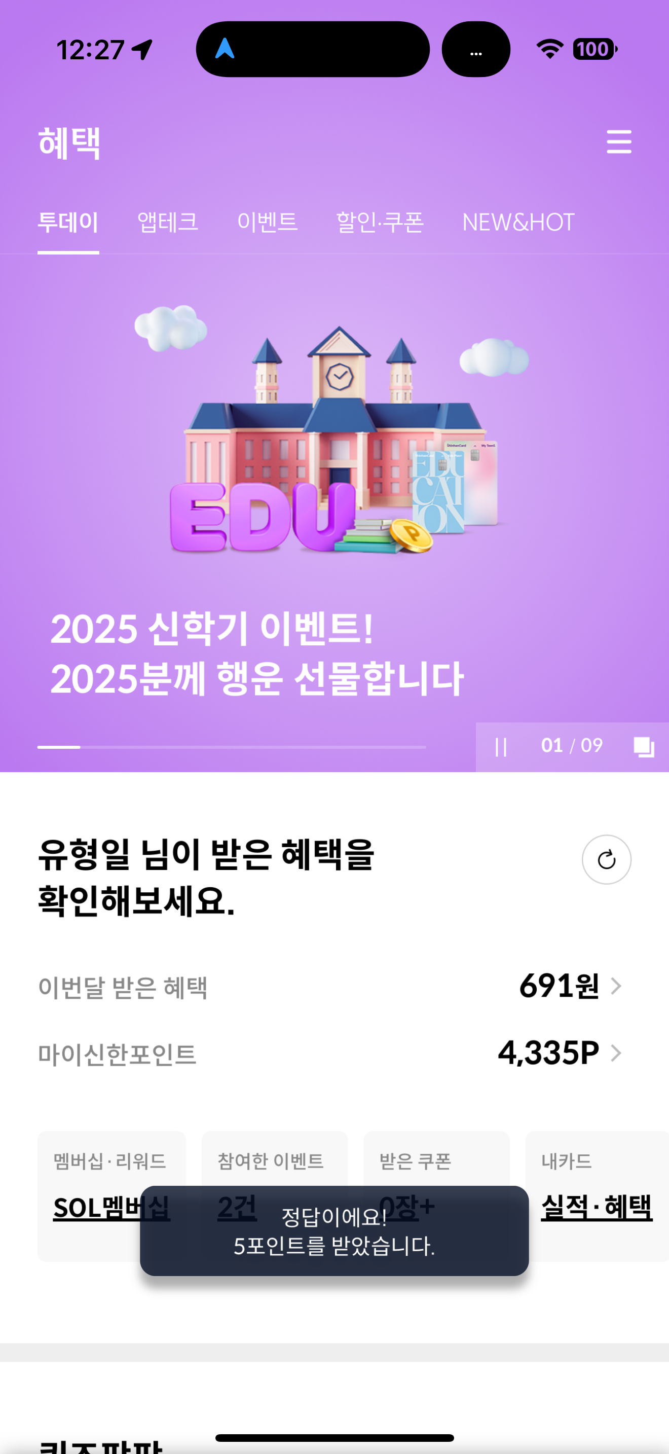 신한카드 퀴즈팡팡 2월 25일 문제입니다
