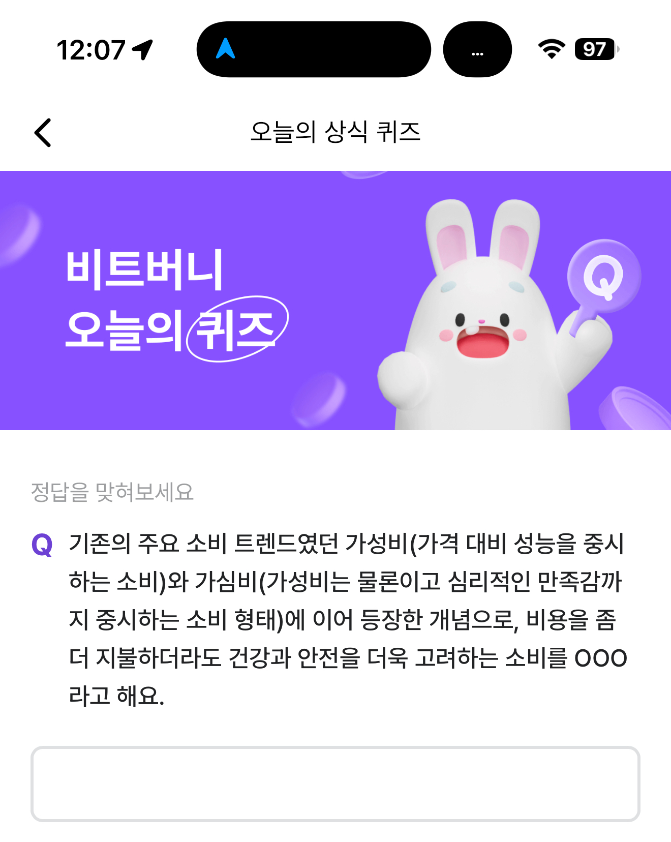 비트버니 오늘의 퀴즈 정답은 가안비 입니다