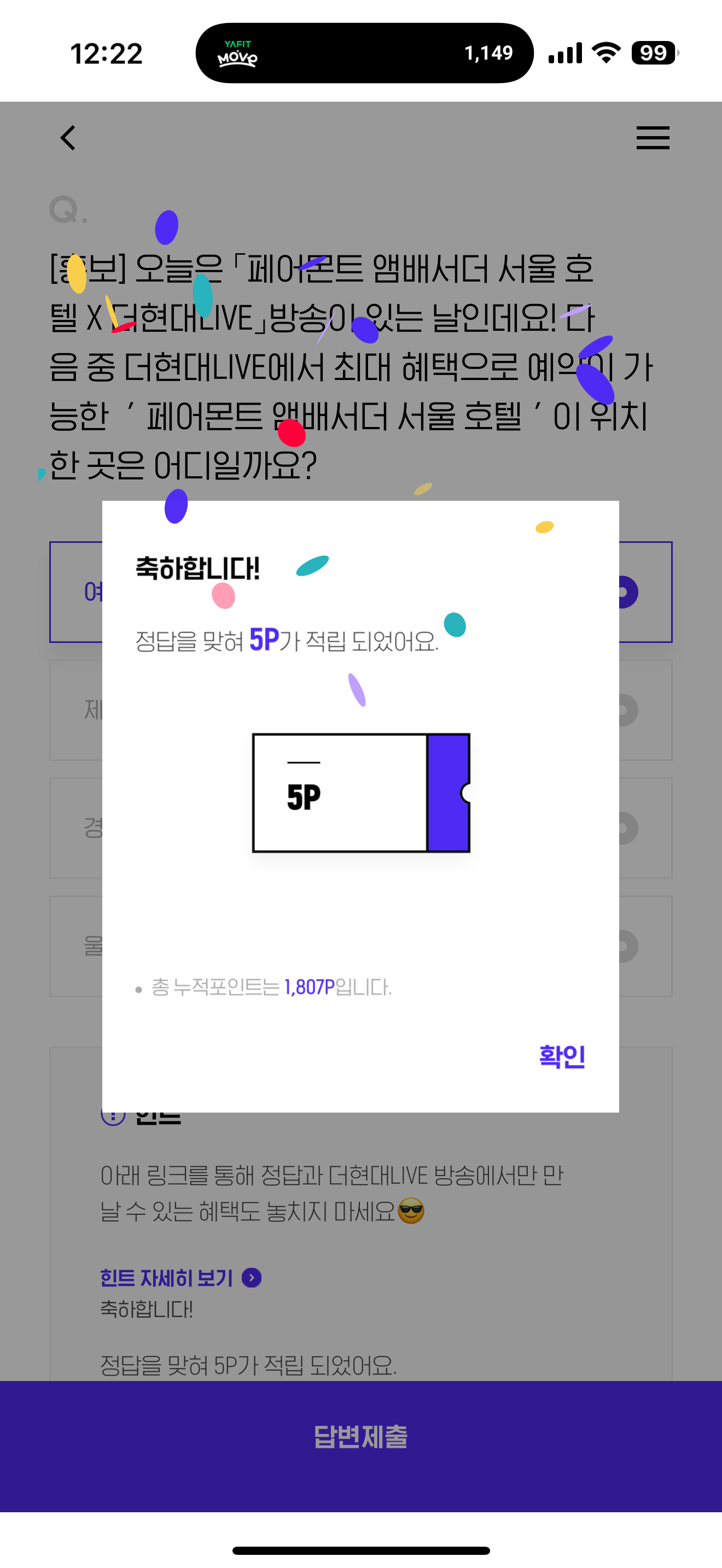 H포인트 퀴즈 2월 27일 정답(오늘은 페어몬트 앰배서더 서울 호텔 X 더현대LIVE 방송이 있는 날인데요! 다음 중 더현대LIVE에서 최대 혜택으로 예약이 가능한 ' 페어몬트 앰배서더 서울 호텔 ' 이 위치한 곳은 어디일까요?)