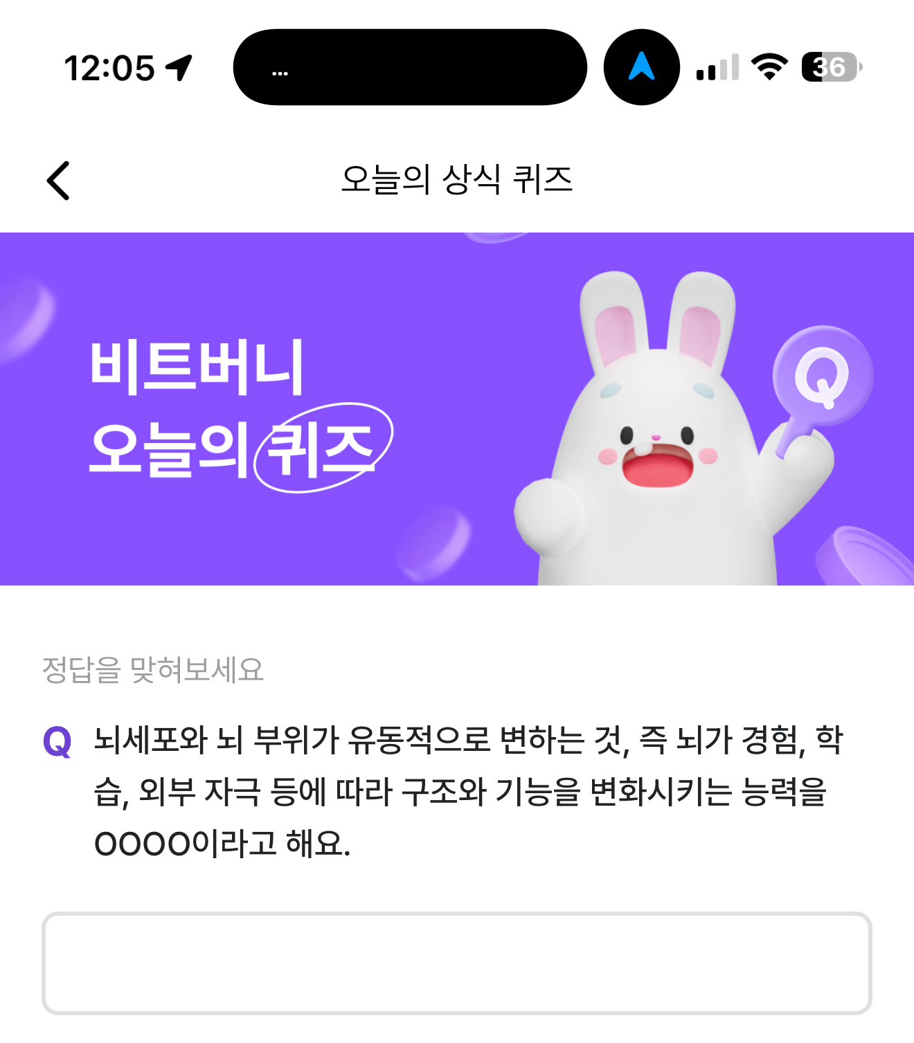 비트버니 오늘의 퀴즈 정답은 뇌가소성 입니다